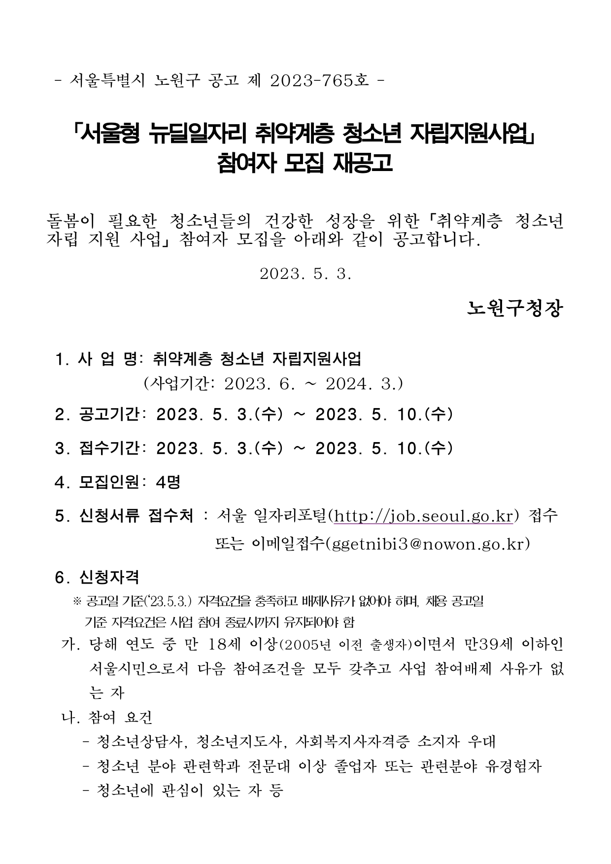 | 상상이룸센터(노원진로직업체험지원센터) 직원 채용 합격자 공고 (0) | 2023.04.20 |