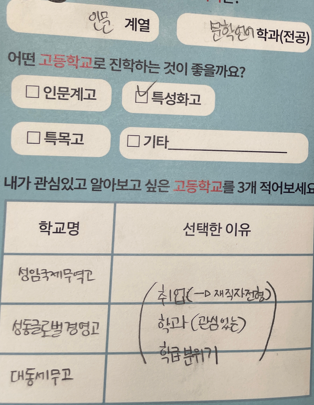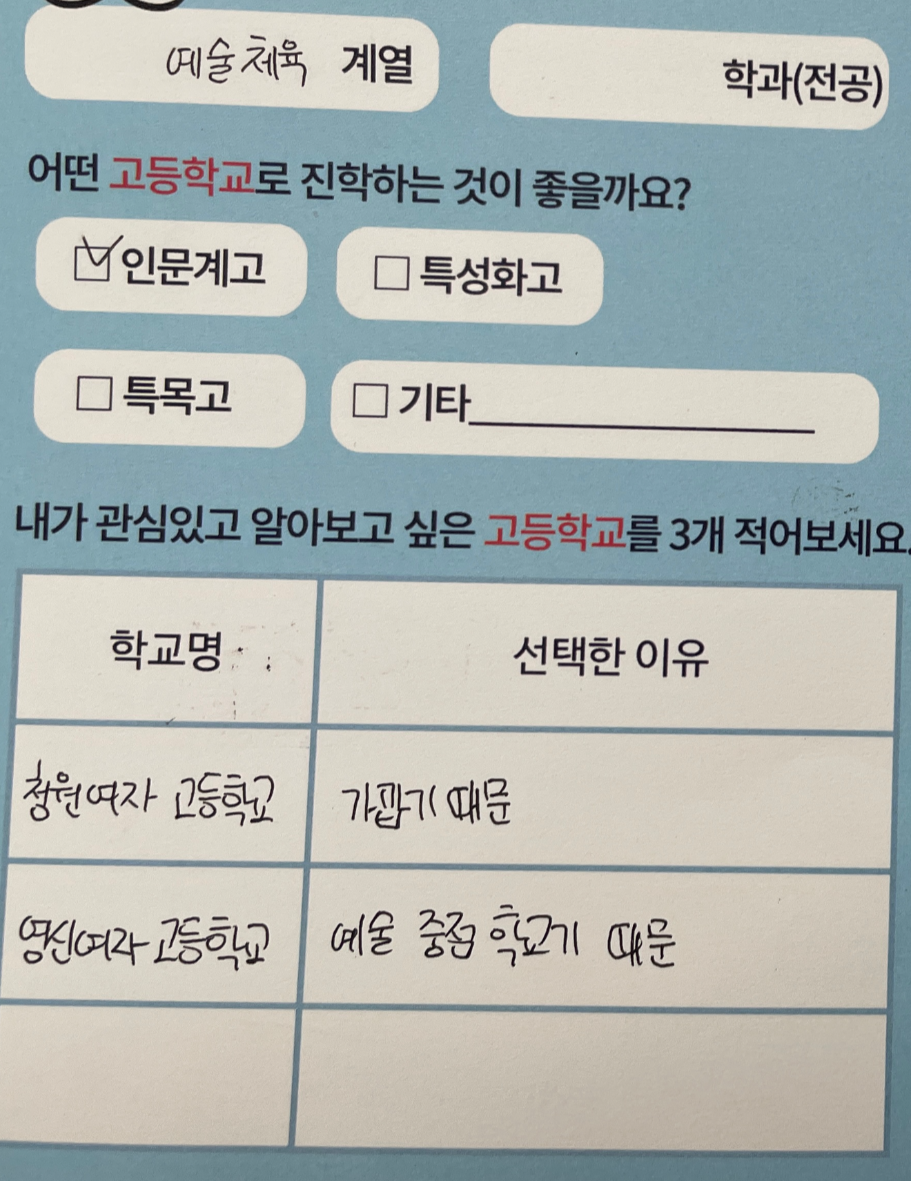 오늘 진지하게 고민하고 적어보았던 이 활동이, 우리 친구들의 고등학교 진학에 도움이 될 수 있을 거에요!