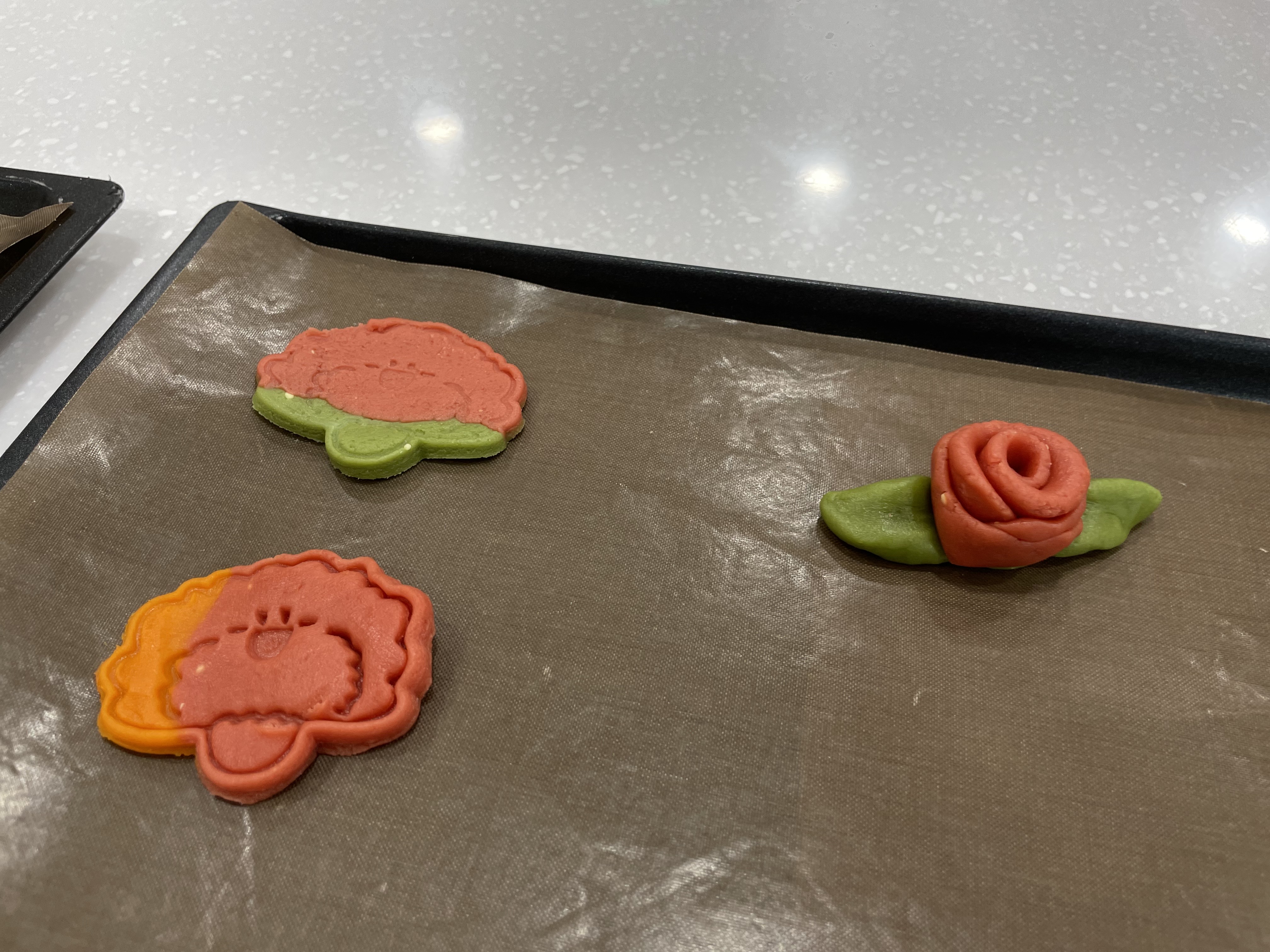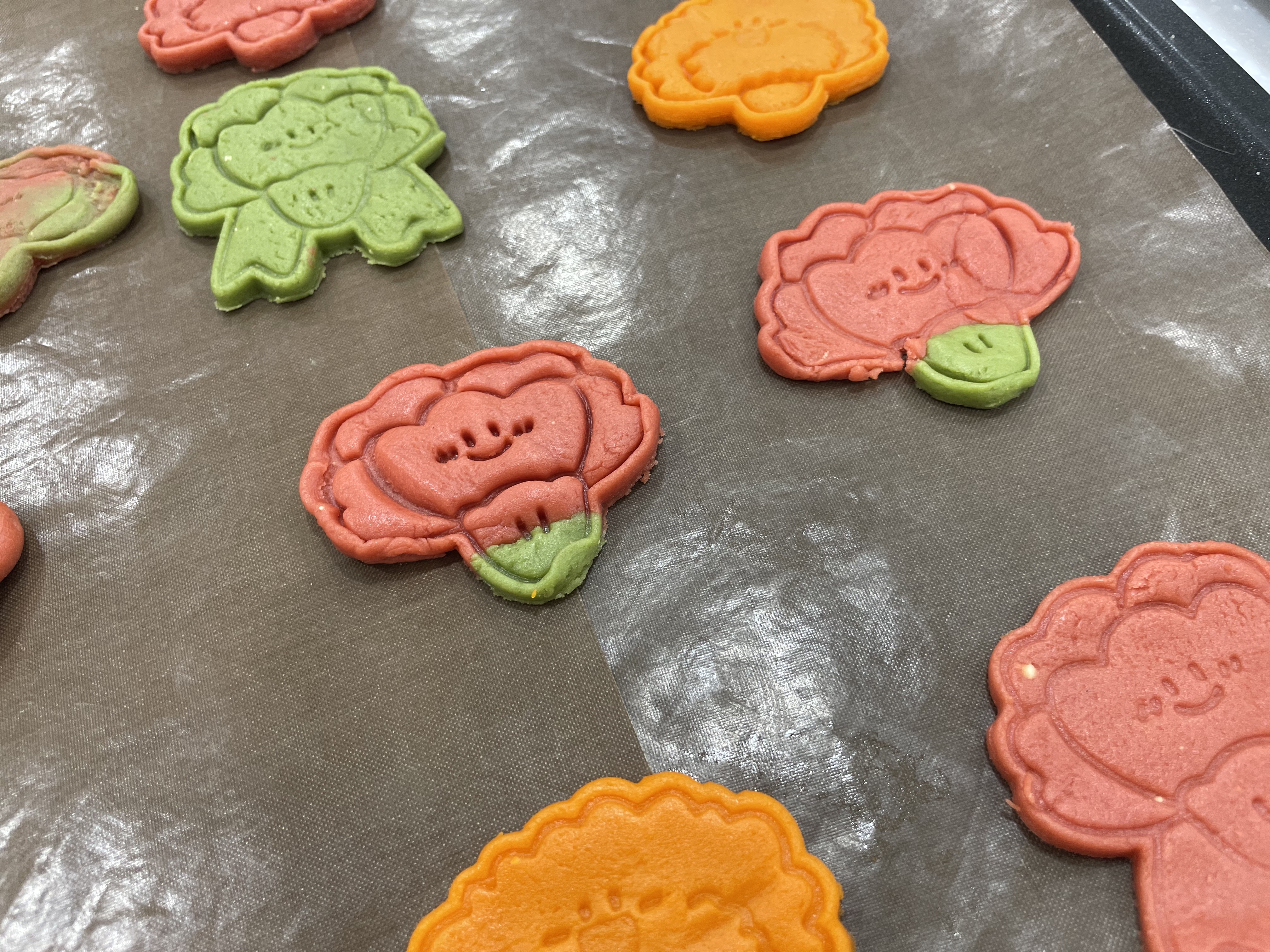 카네이션 모양의 틀로 찍기도 하고, 자신이 원하는 모양의 쿠키를 자유롭게 만들었습니다!