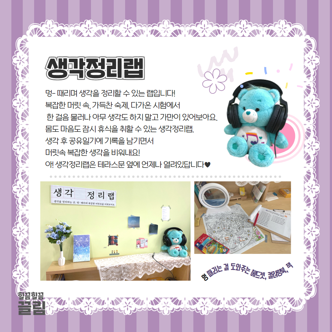 멍- 때리며 가만히 앉아 생각을 정리할 수 있는 공간입니다 !