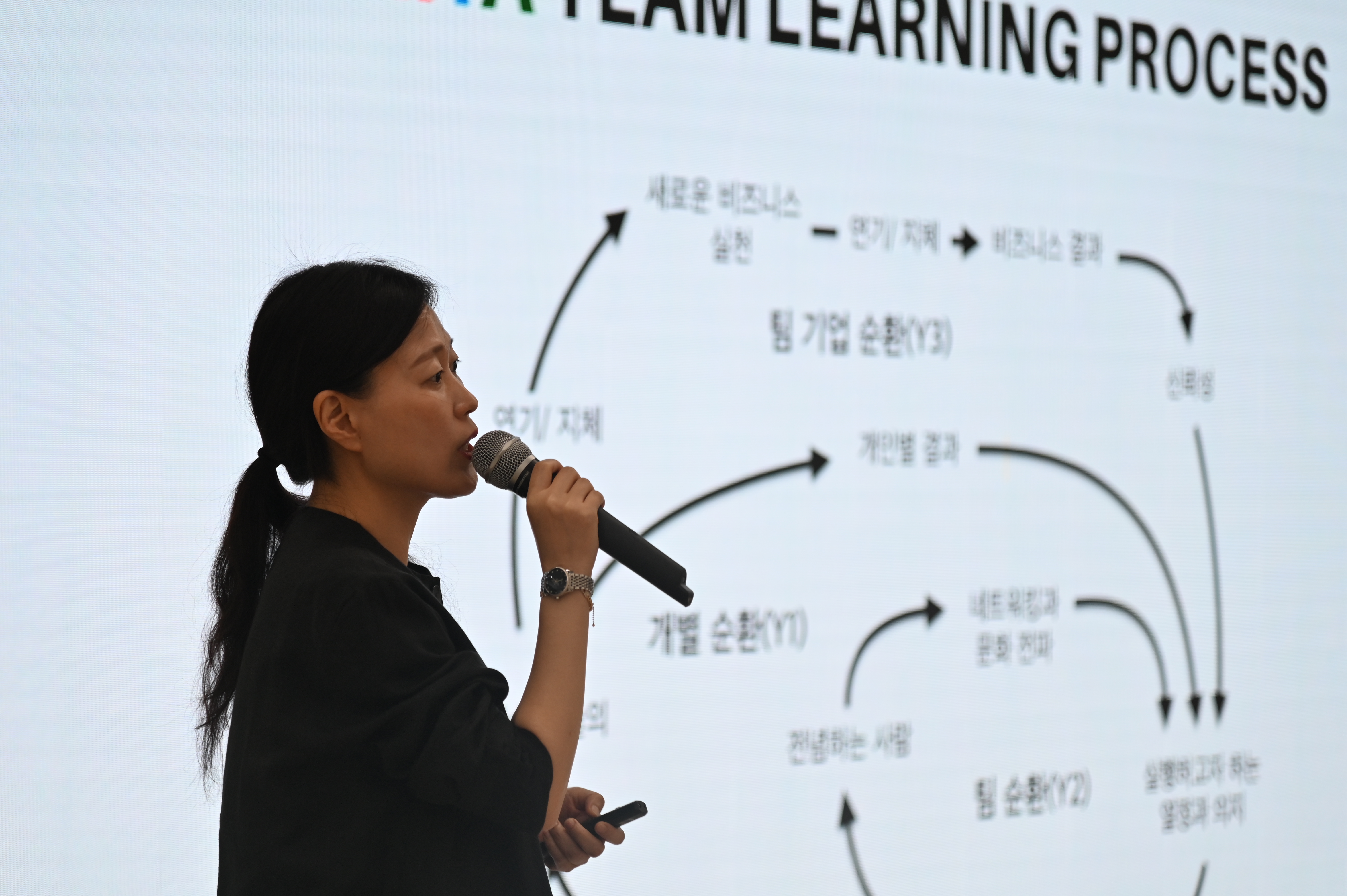 오랜 기간 대학에서 지내오시며 새로운 교육을 만났고 이는 강의중심의 지식습득보다 역량을 중심으로 모듈화되는 평생교육의 관점에서의 학습중심의 교육으로의 대전환을 이야기해주셨습니다. 개인의 성찰과 팀 앙트레프레너십을 핷힘가치로 삼아 문제해결 및 협력적 실행 역량을 키우는 변혁적 학습과정을 하는 방식이 AI 시대의 필요교육이라는 기조의 강연이었습니다.