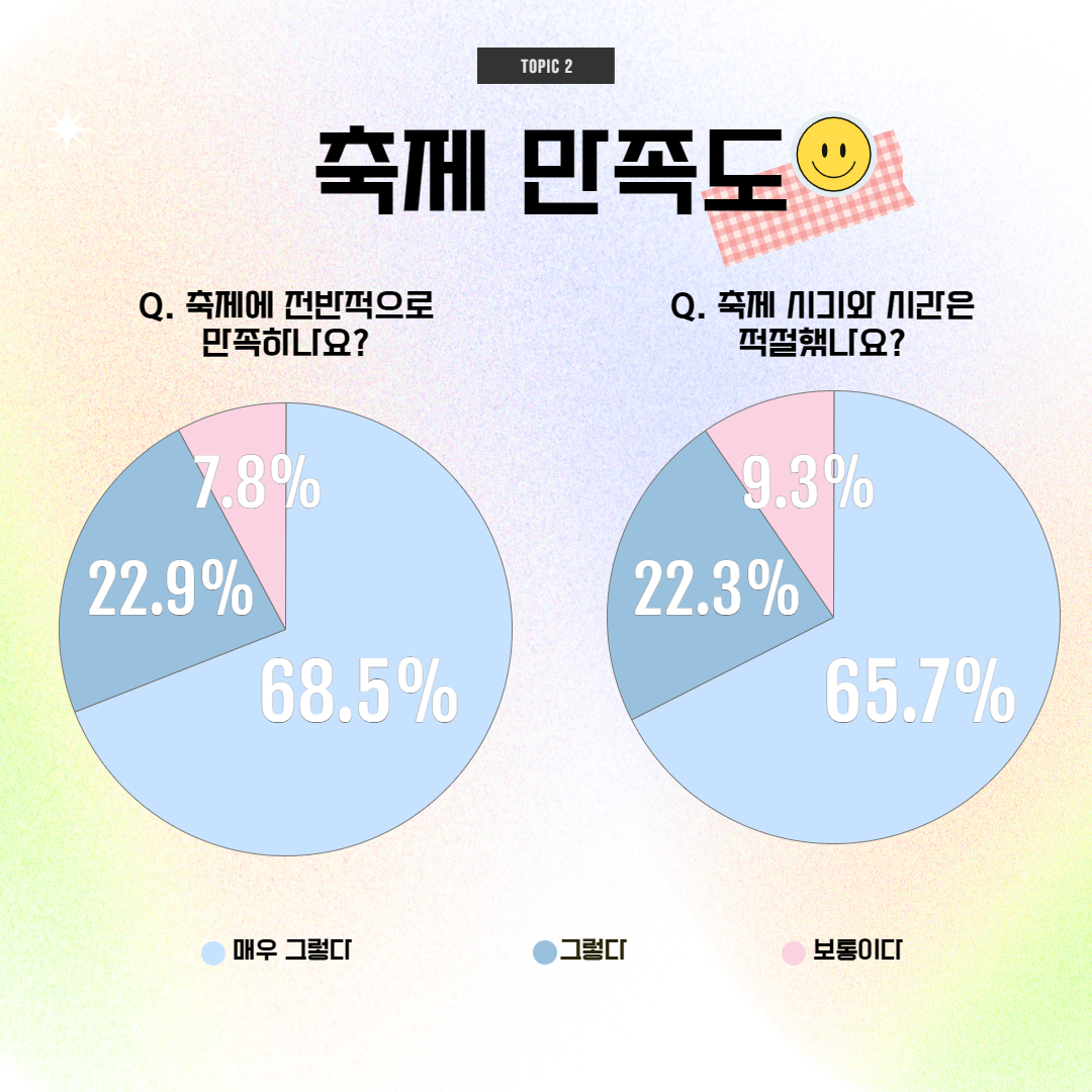 해당 카테고리에는 전반적인 축제 운영과 축제 시기의 적절성에 대한 질문을 두었습니다.
