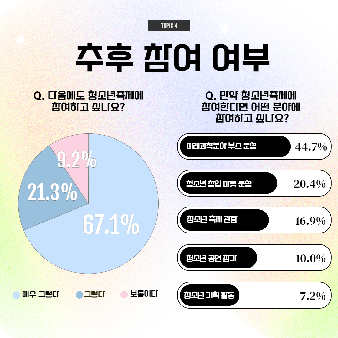 뒤를 이어, 다음에도 청소년 축제에 참여하고 싶나요? 라는 질문에 응답자들은 어떤 반응을 보였을까요?
