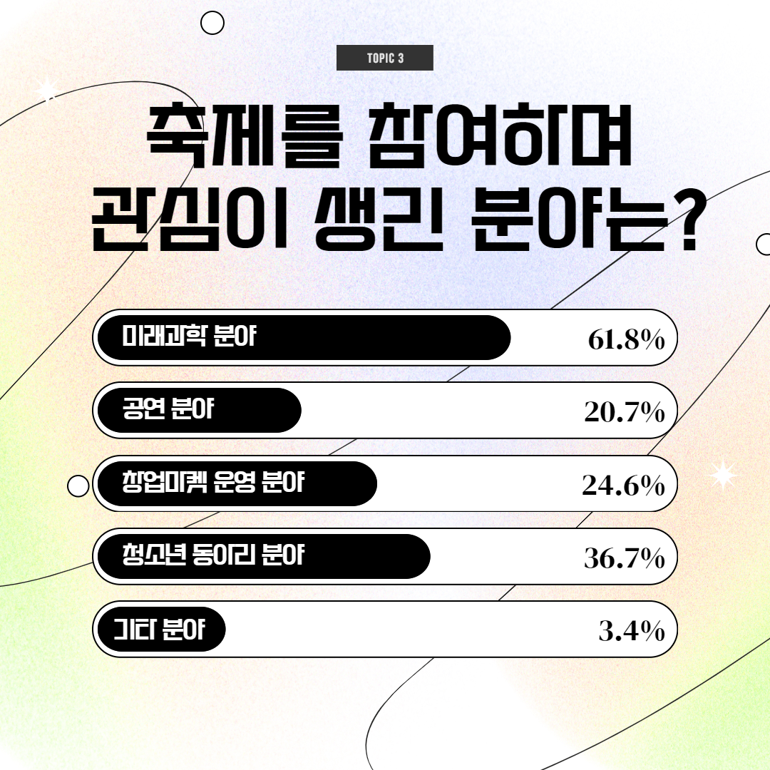 이어서, 참여자들이 축제에 참가하며 관심이 생긴 분야는 무엇일까요?