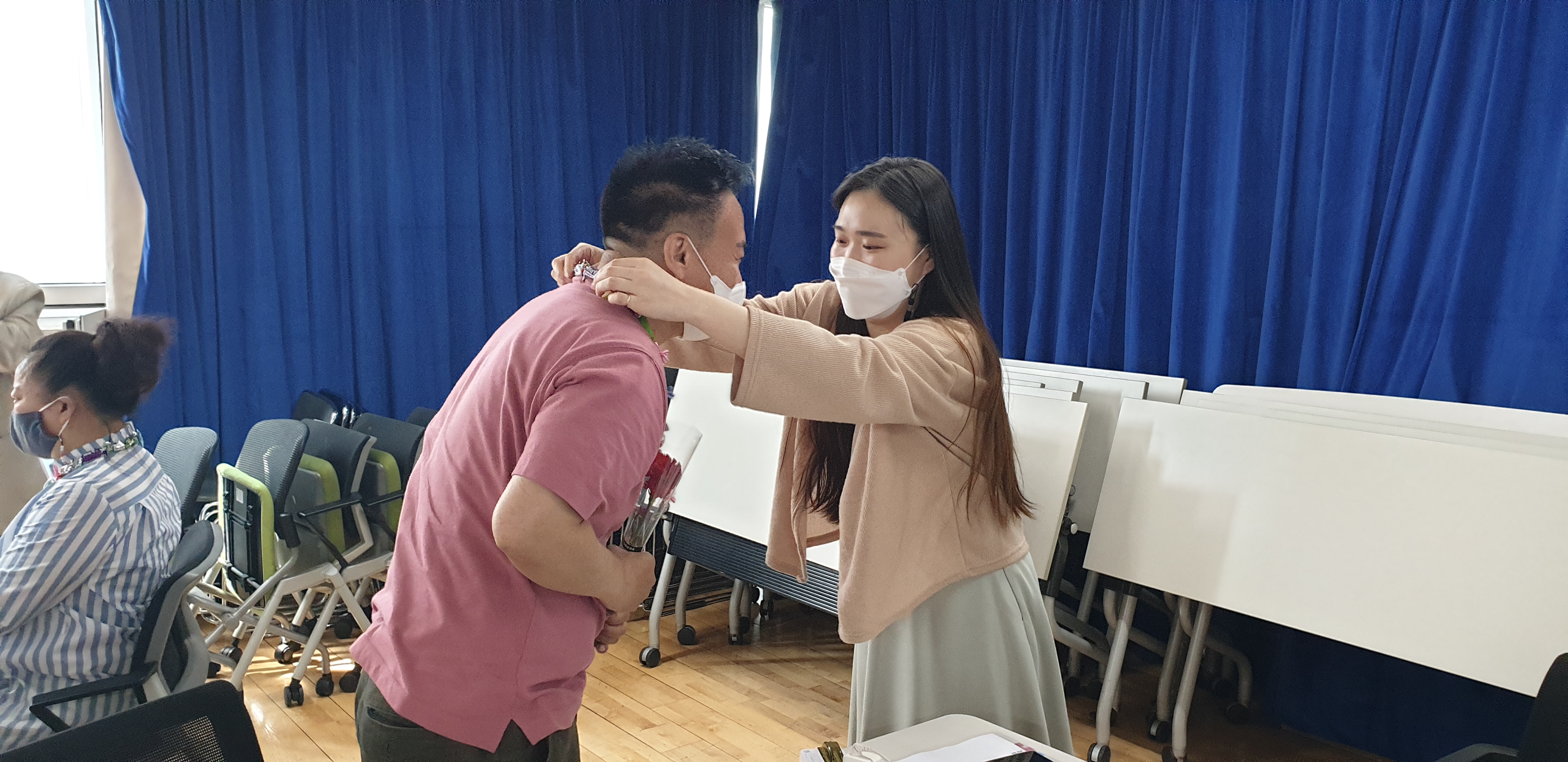 "강사로 일 한 이후 처음 카네이션을 받았다. 감동적이다"