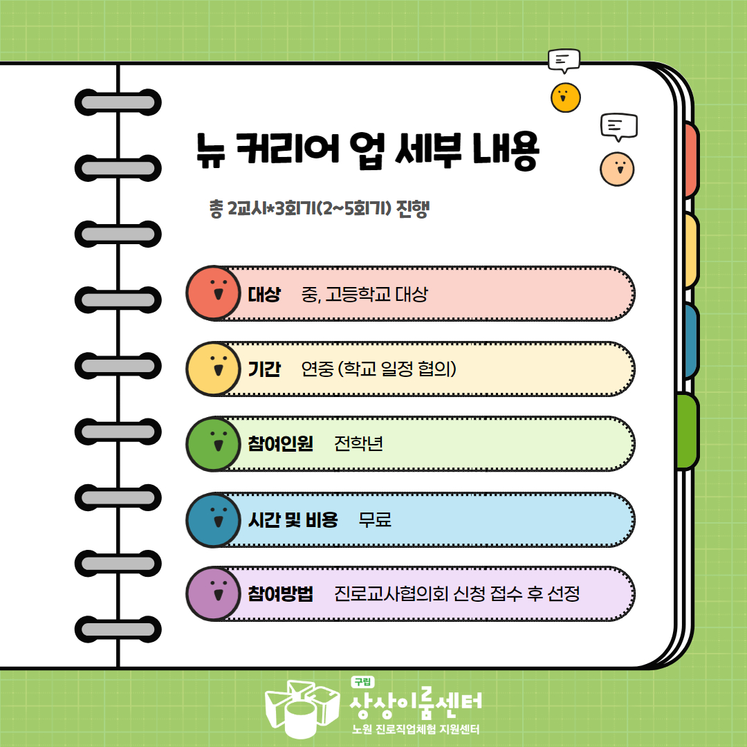 문의 : 상상이룸센터(노원진로직업체험지원센터) 학교지원팀 김미혜 070-4706-4165