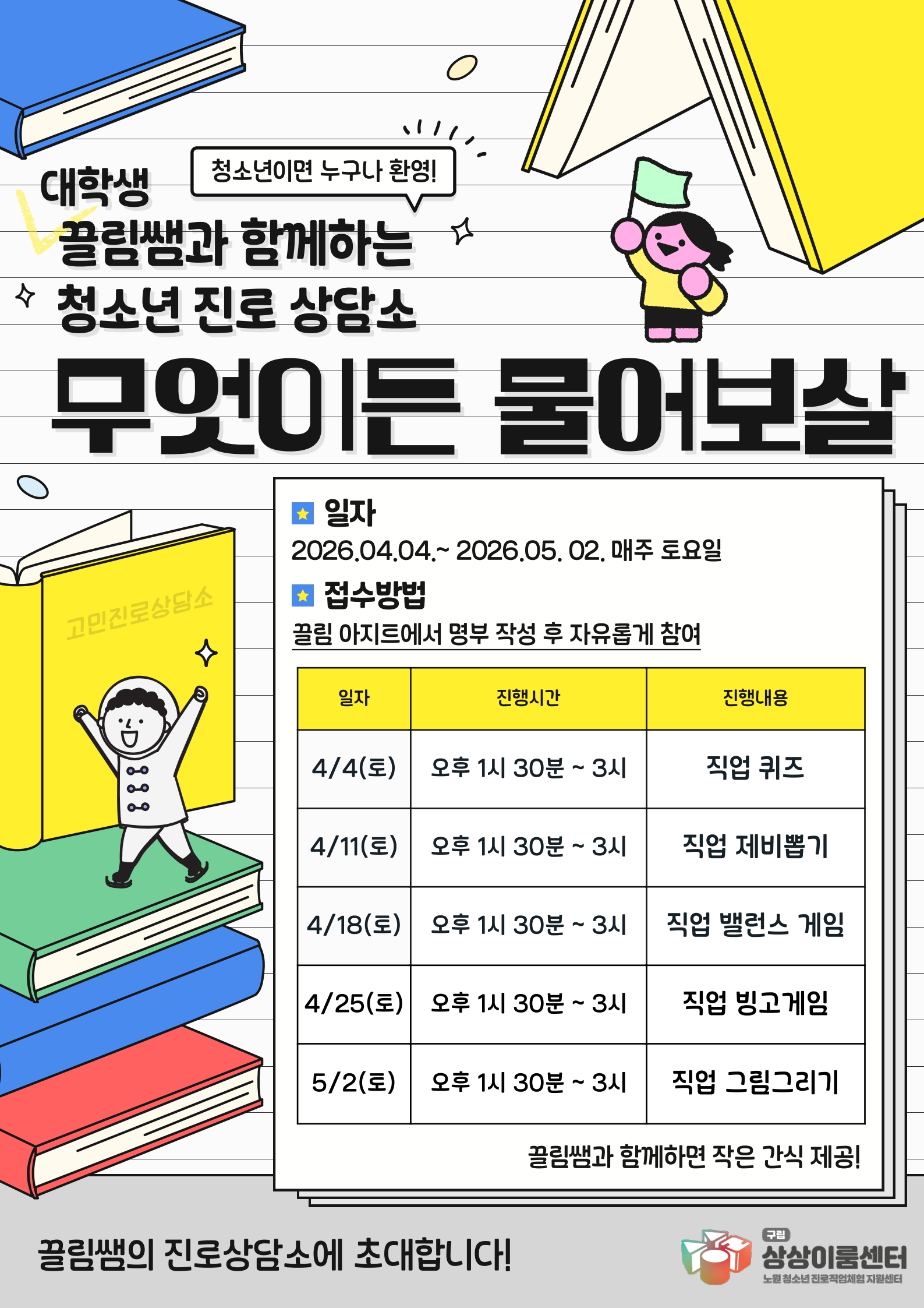 대학생 끌림쌤과 직업 관련 게임 함께하고 맛있는 간식 받아가세요~
