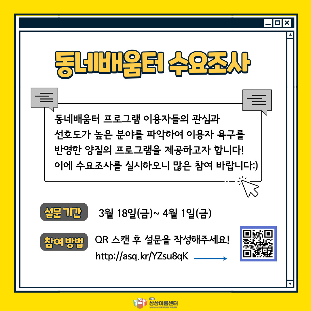 제공하기 위해 동네배움터 프로그램 요조사를 진행하려고 합니다!