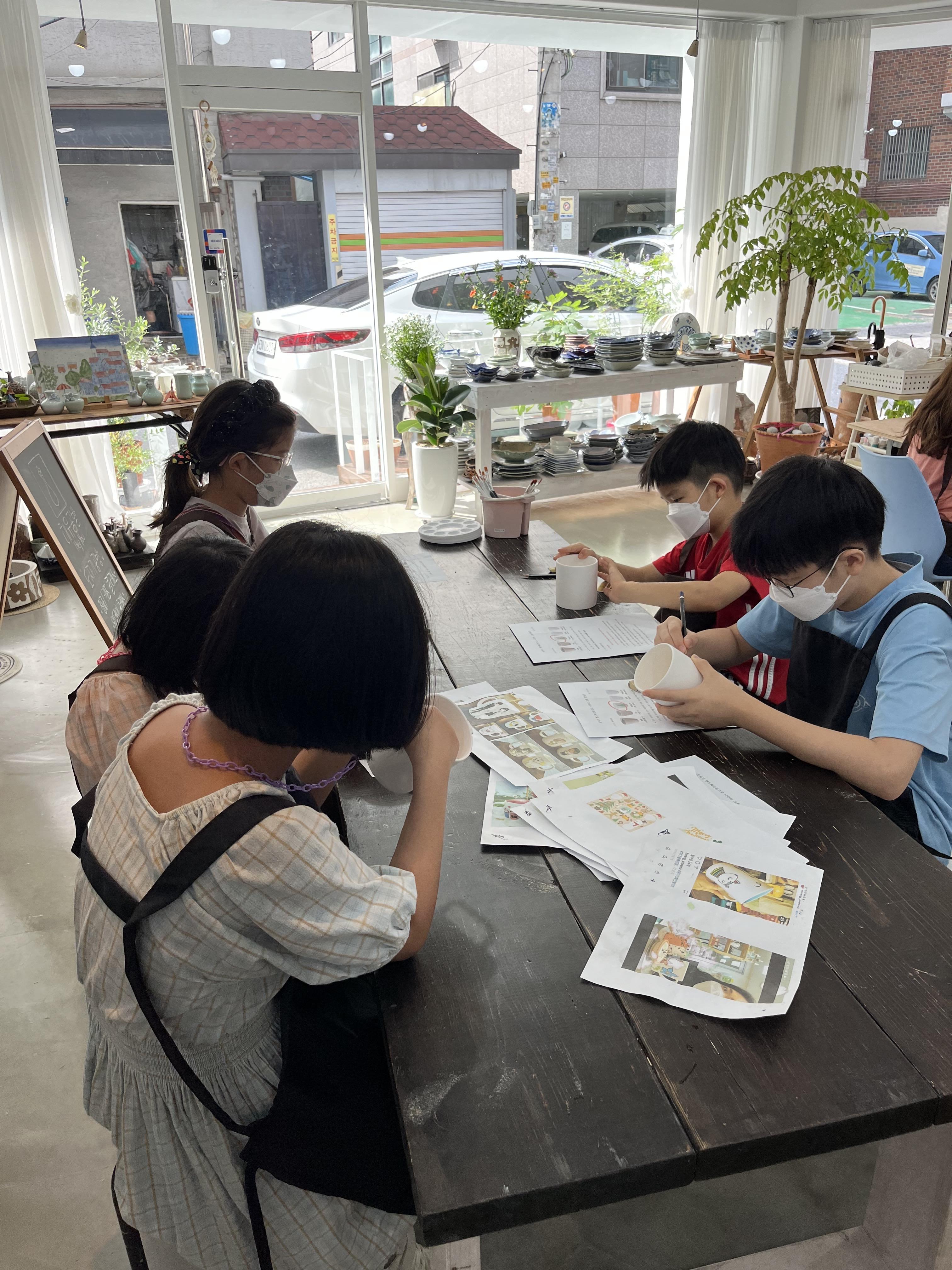 초벌된 기물에 자신이 좋아하는 캐릭터나 그리고 싶은