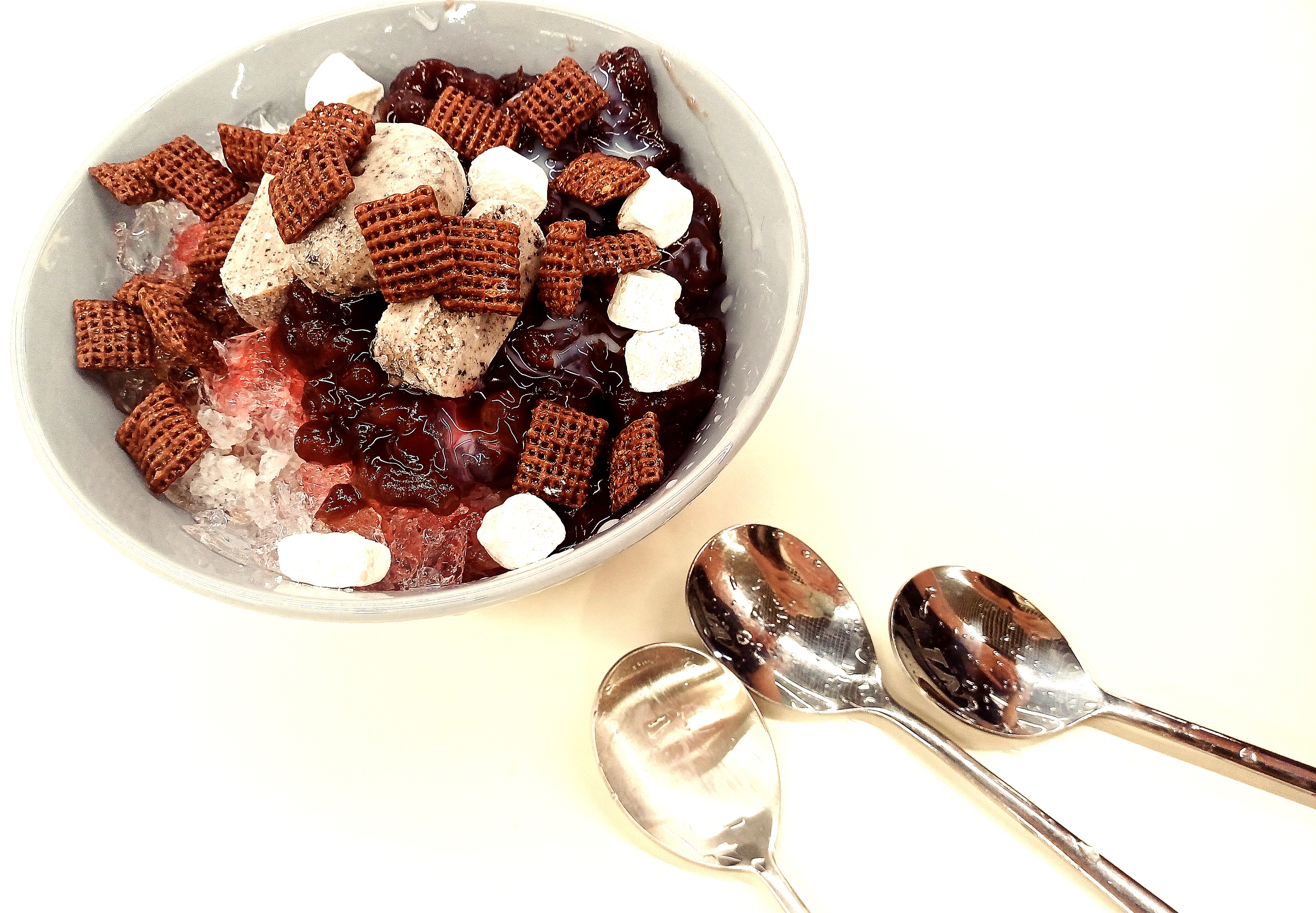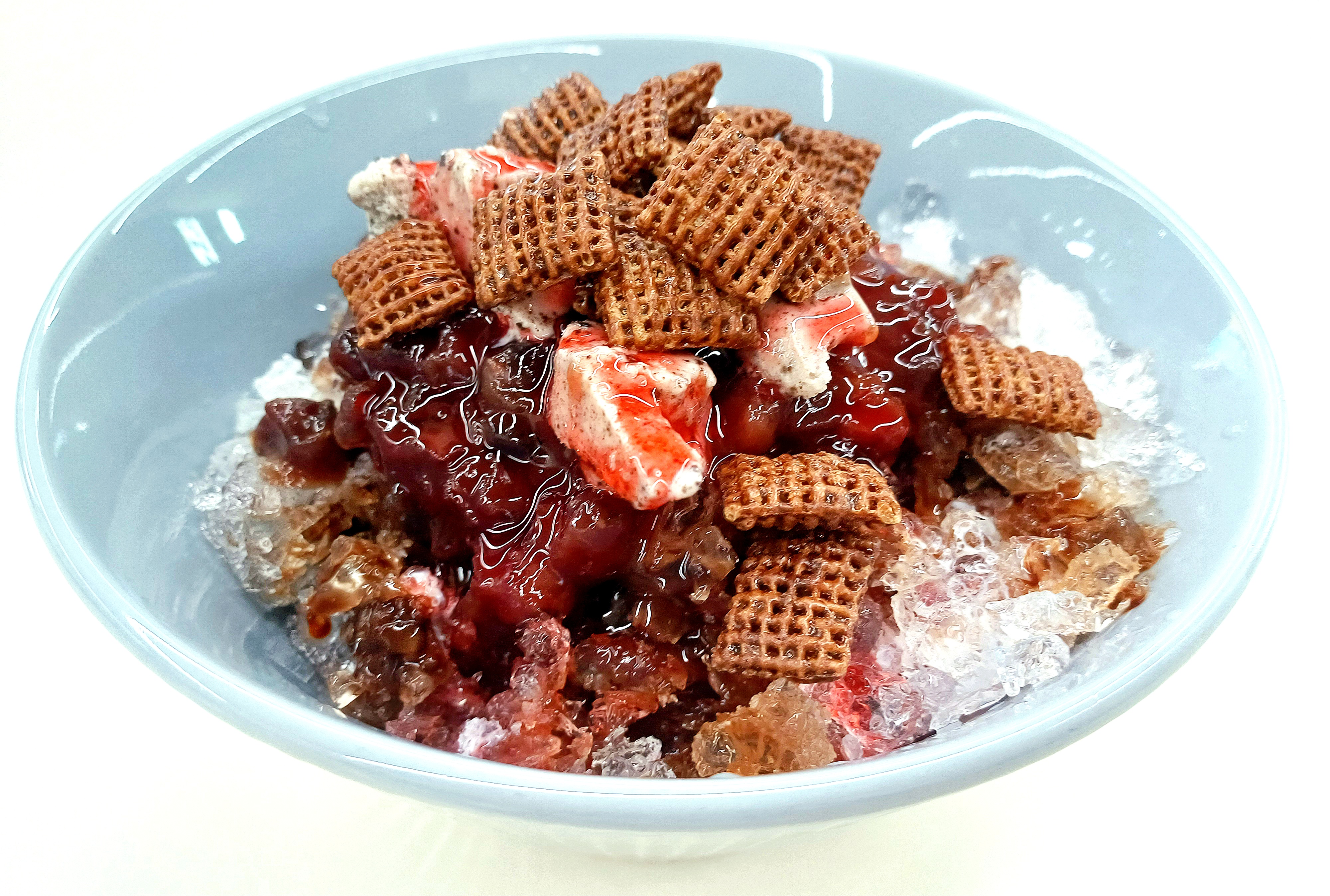손수 갈아낸 얼음, 팥과 초코 시리얼, 각종 시럽, 떡, 예쁘게 자른 아이스크림까지 아낌없이 담겨 있습니다.