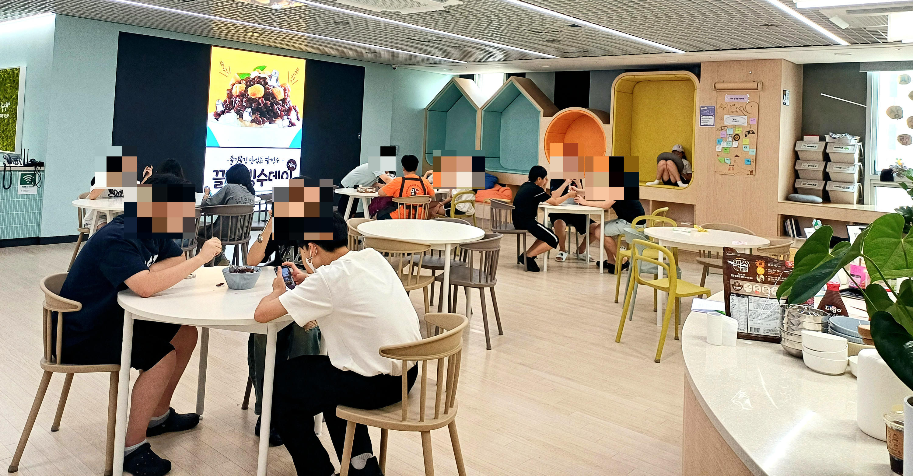 빙수를 즐기는 아이들로 가득 찬 끌림 아지트가 유독 활기차 보입니다.
