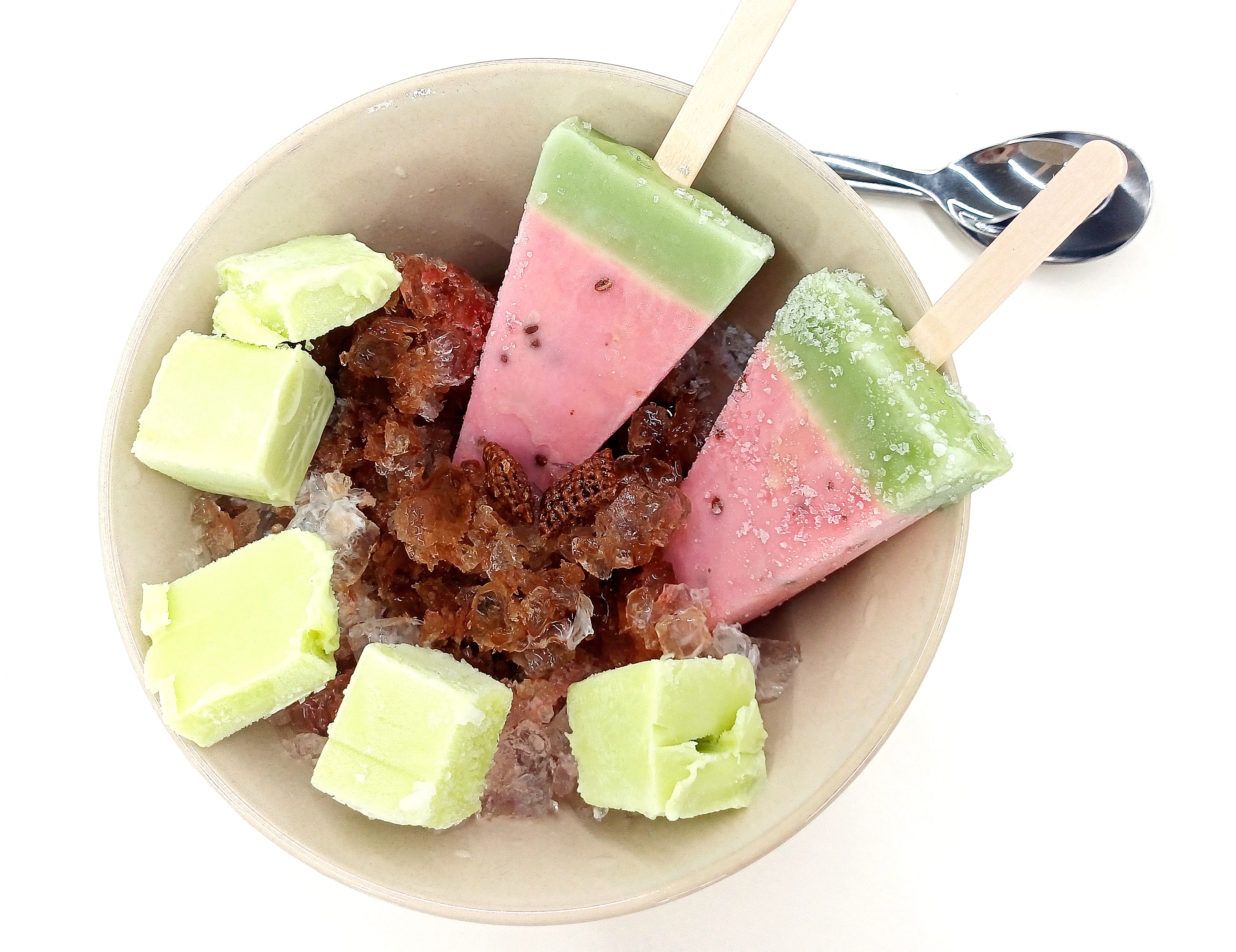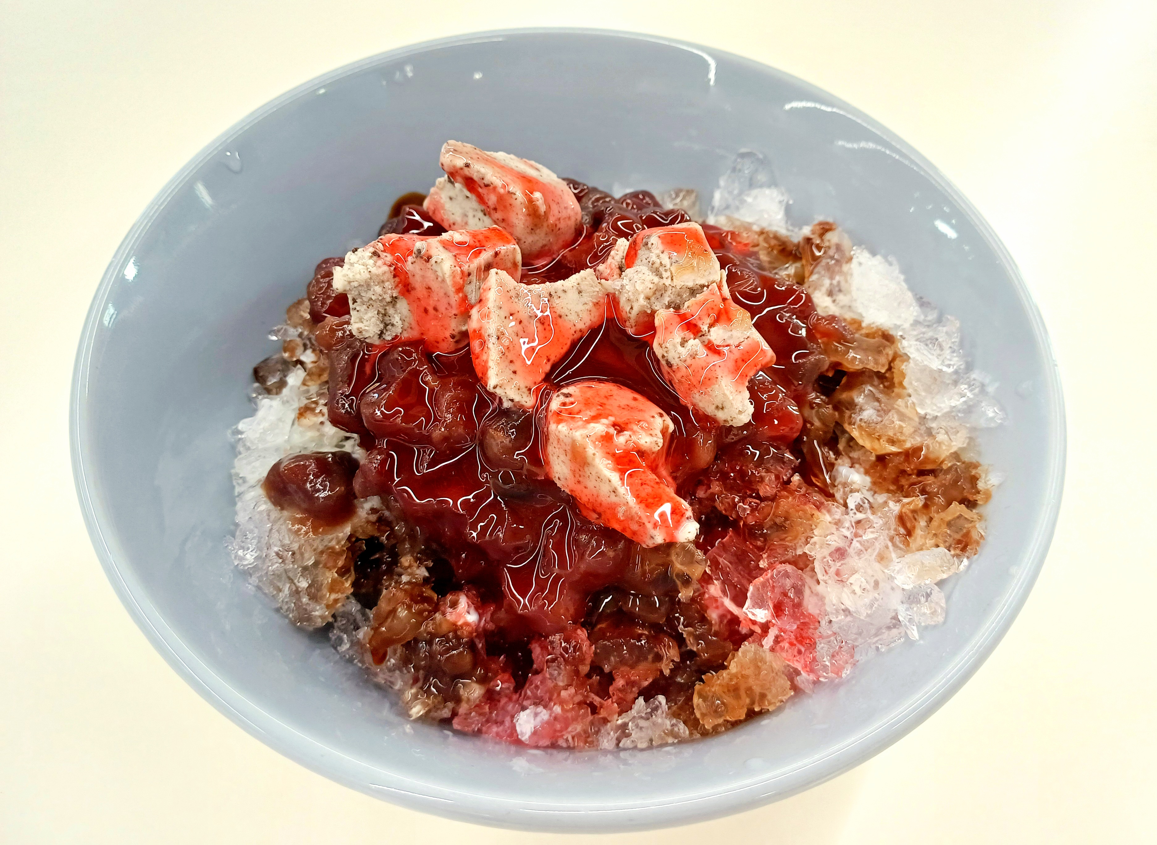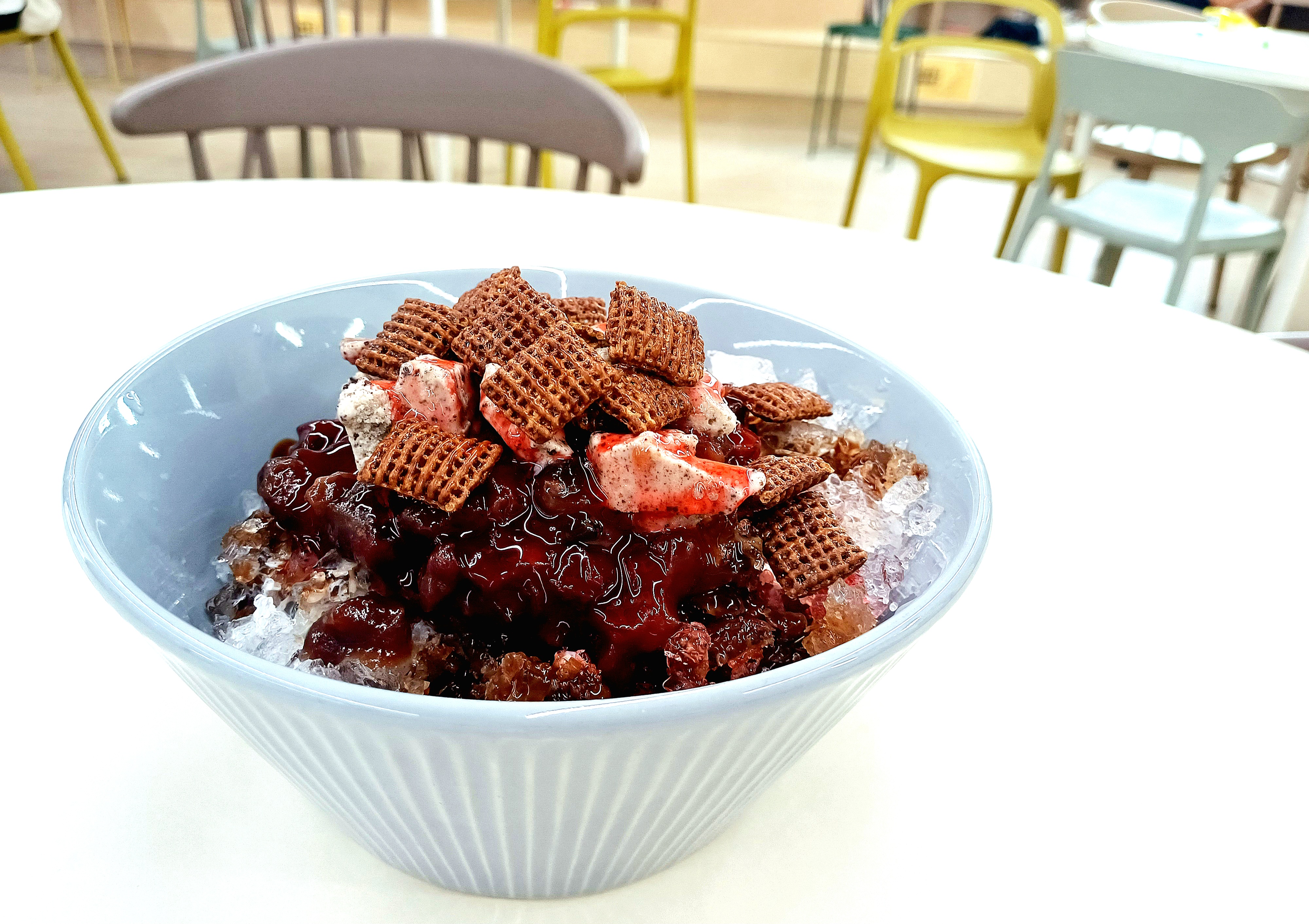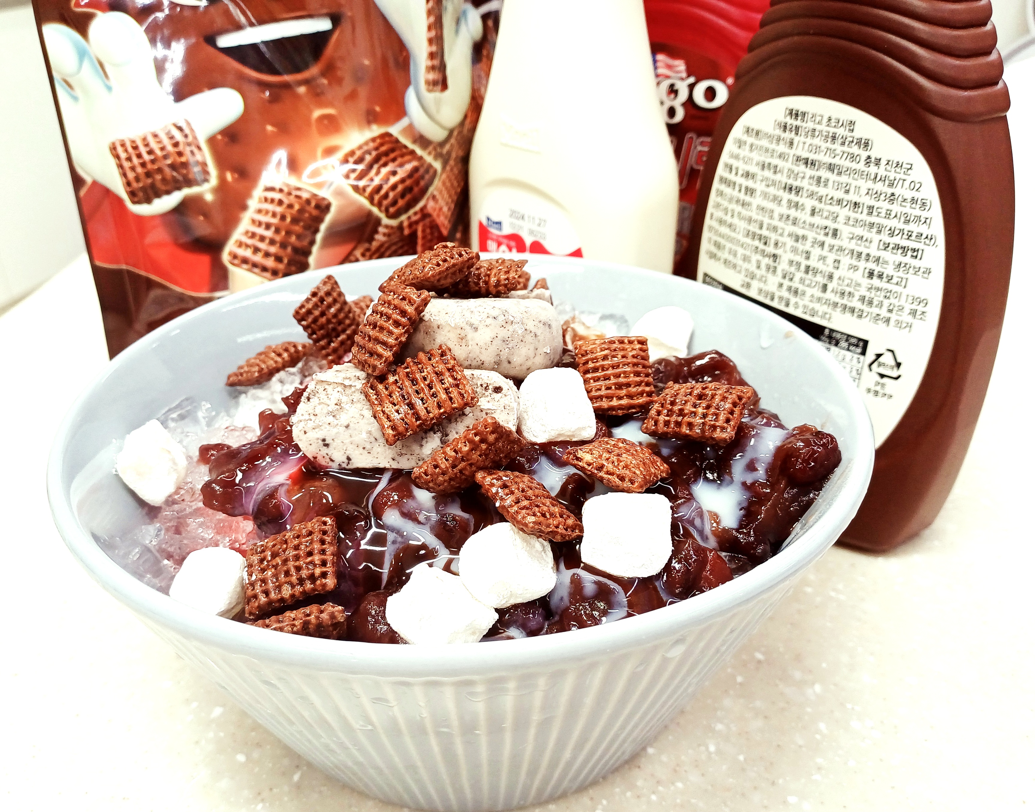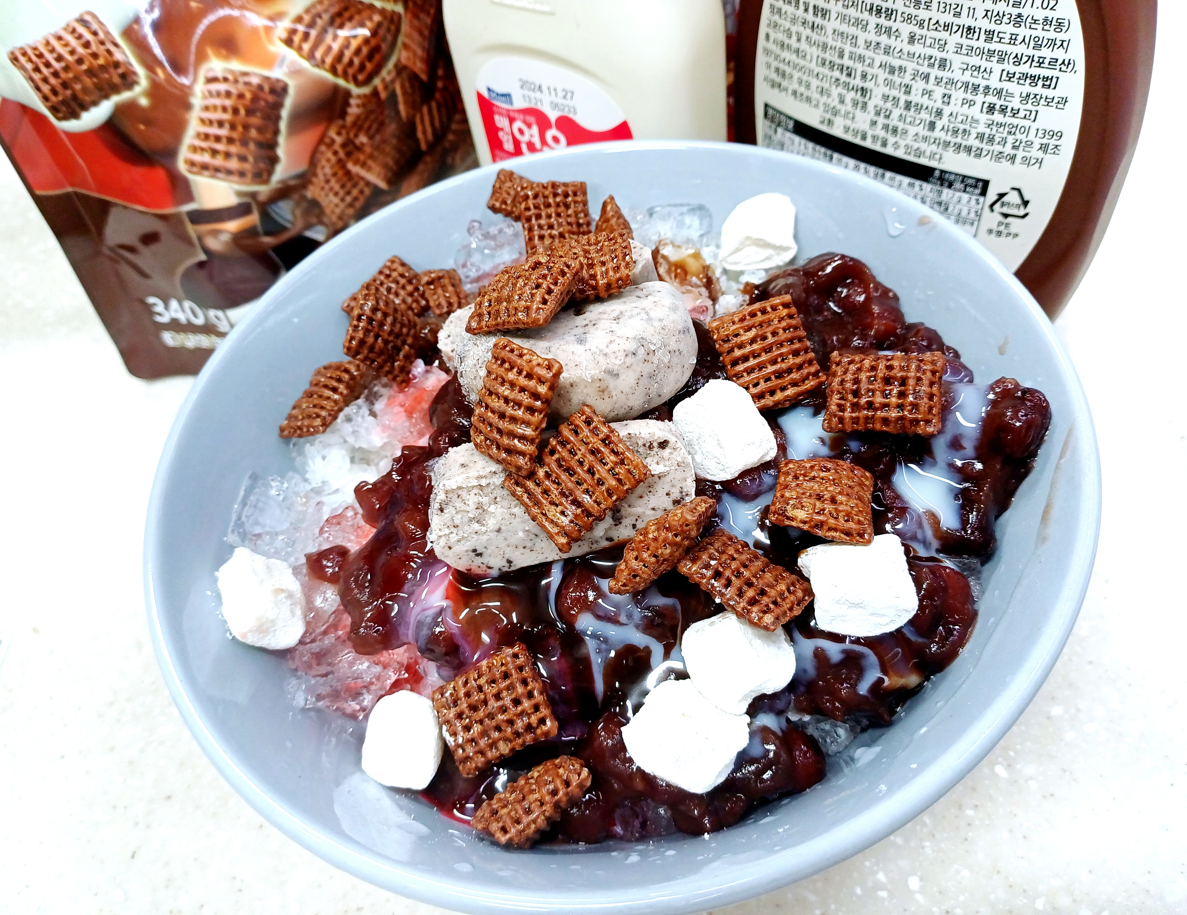 손수 갈아낸 얼음, 팥과 초코 시리얼, 각종 시럽, 떡, 예쁘게 자른 아이스크림까지 아낌없이 담겨 있습니다.