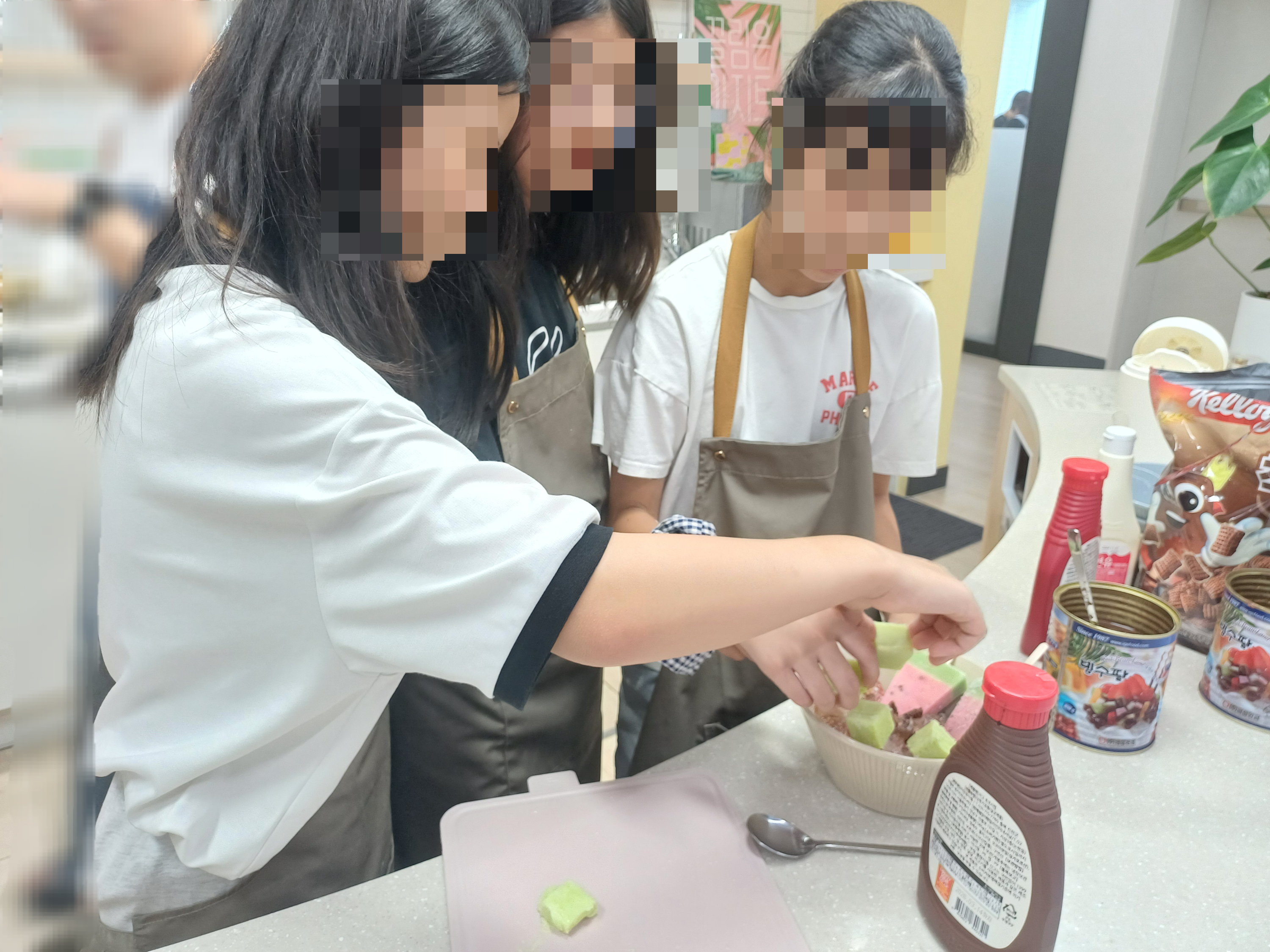 끌림 선생님이 아이들의 기호에 맞춰 빙수를 만들어 주기도 하고,