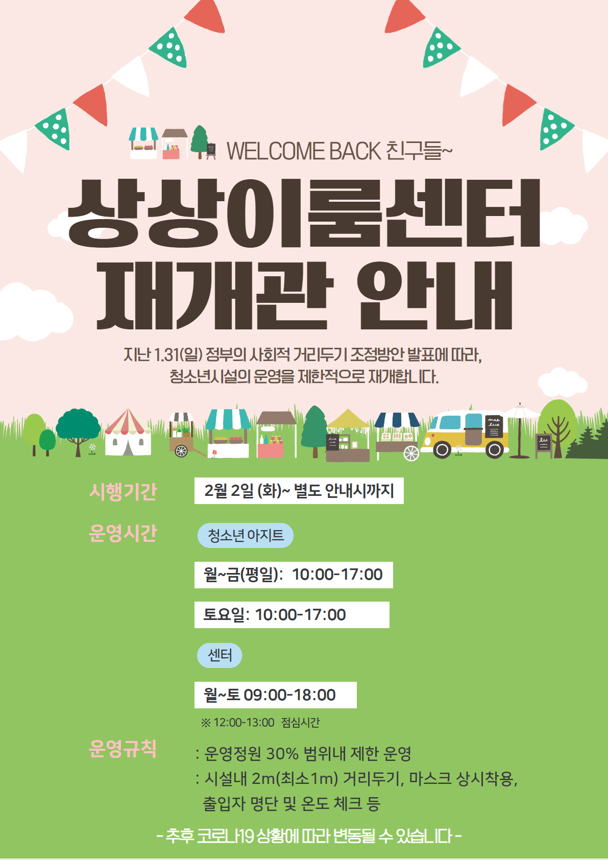 | 상상이룸센터 시설 재개관 일정 연기 안내 (0) | 2021.01.25 |