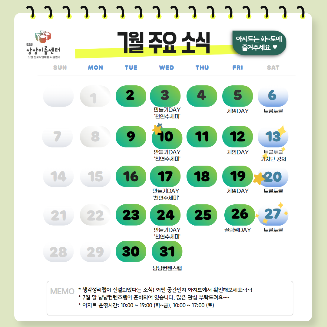7월의 중순이지만 아지트의 남은 일정을 공유드려요 ㅎㅎ