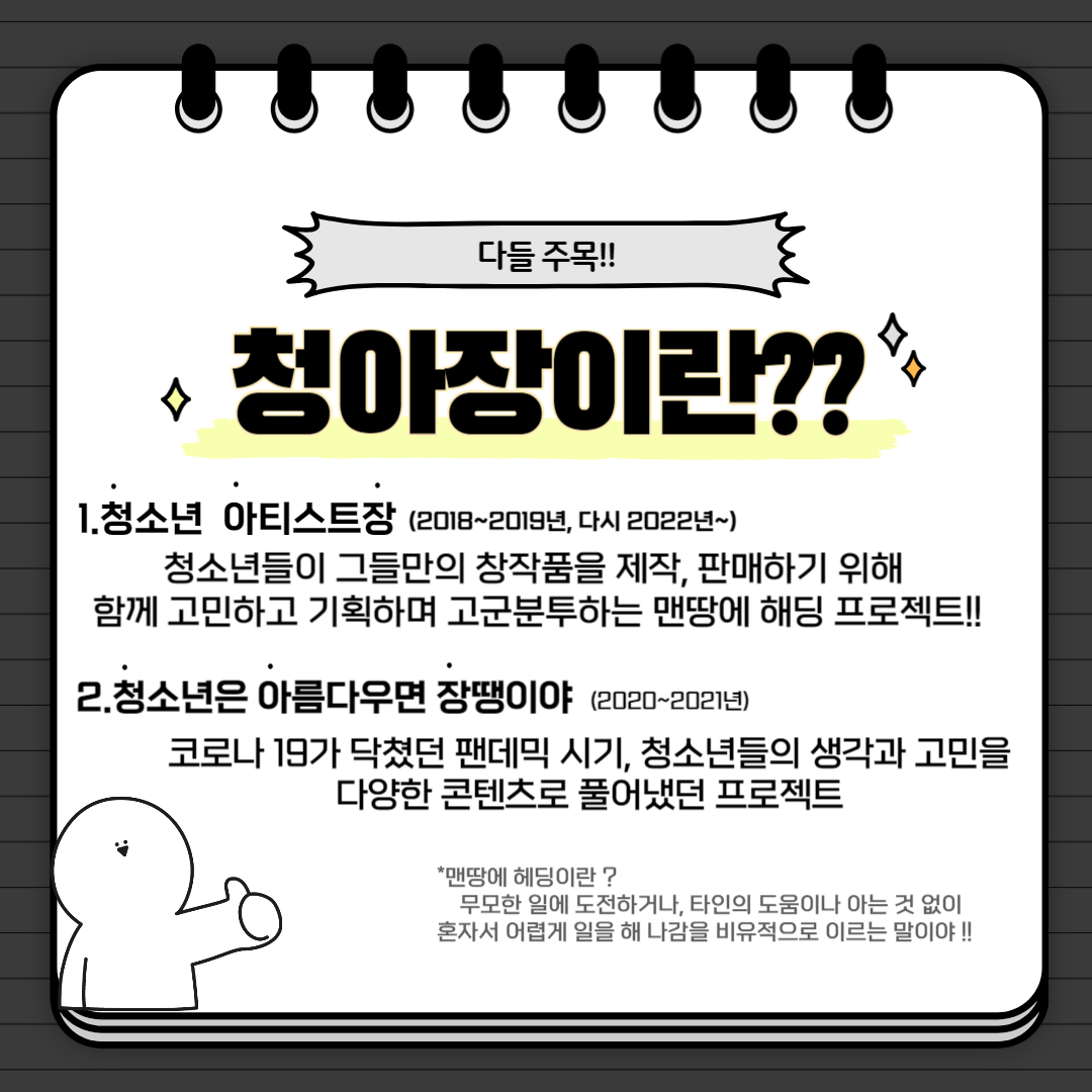 | 「2023 청소년마켓 청아장」중꺾마?! 우린 중꺾꿈마!! (1) | 2023.09.06 |