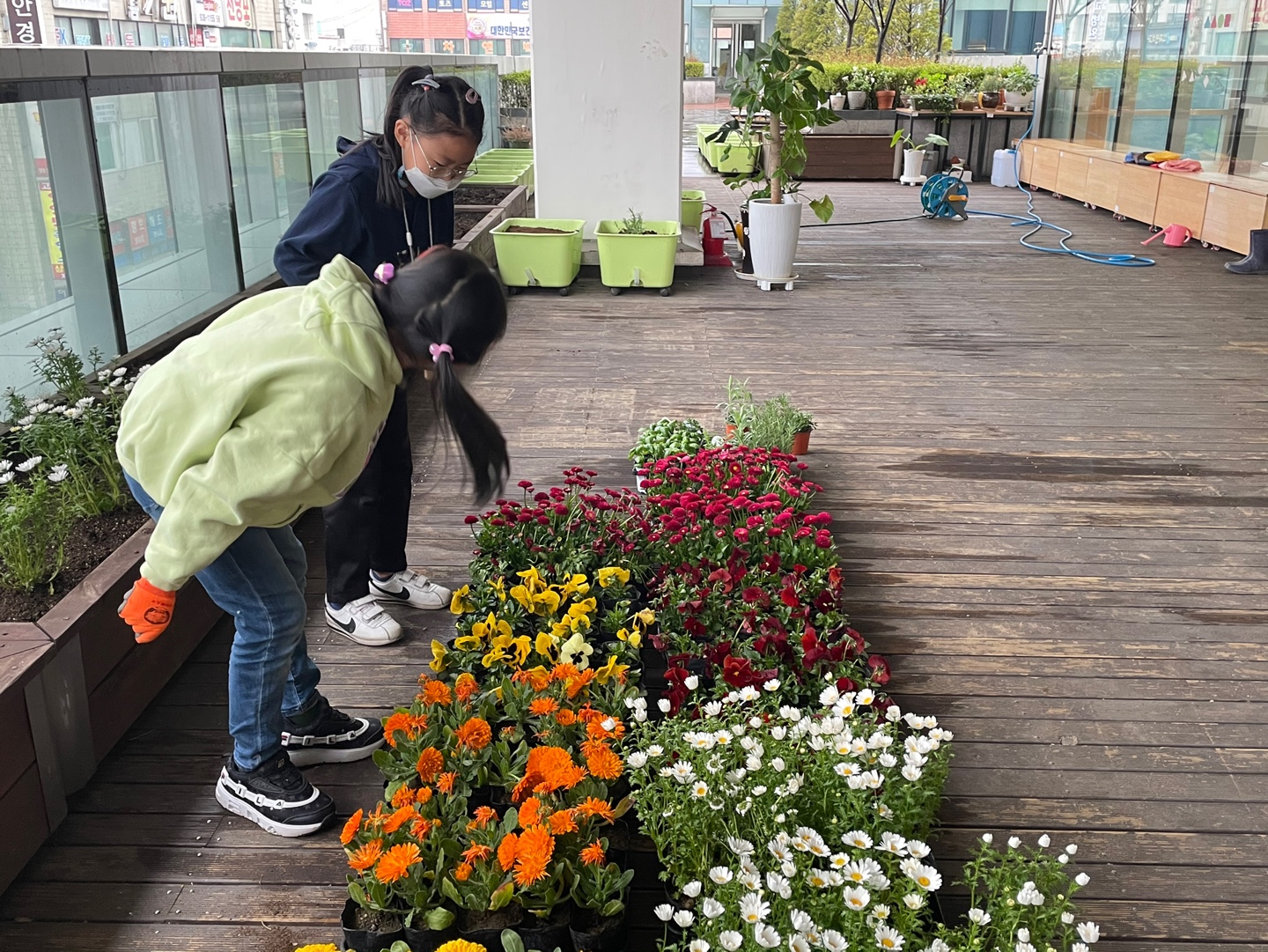 함께 끌림 테라스에서 식물심기를 하였습니다.