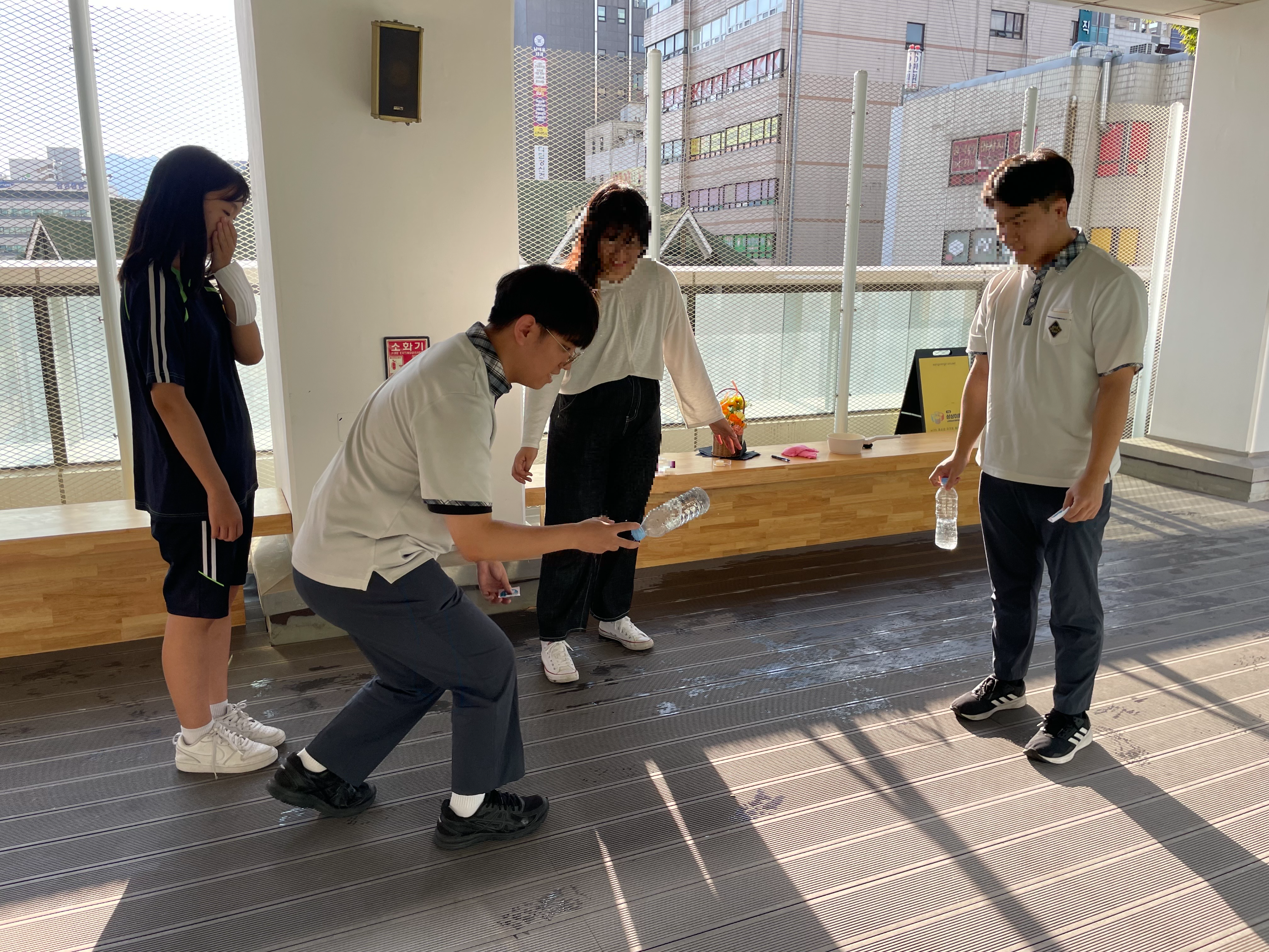한지를 물총으로 쏴서 어떤 글자인지 알아내면 성공입니다!