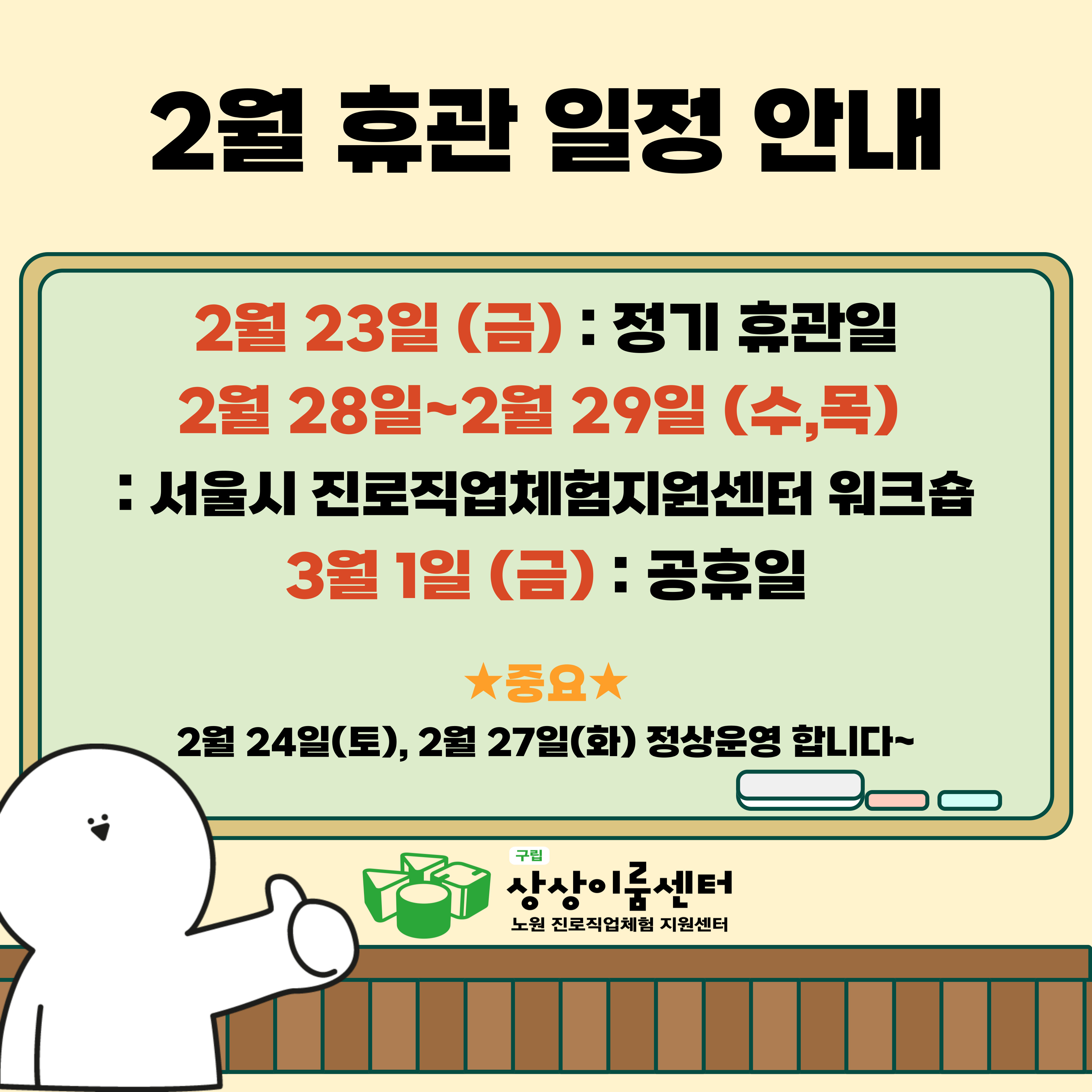 아지트 휴관일을 알려드립니다!