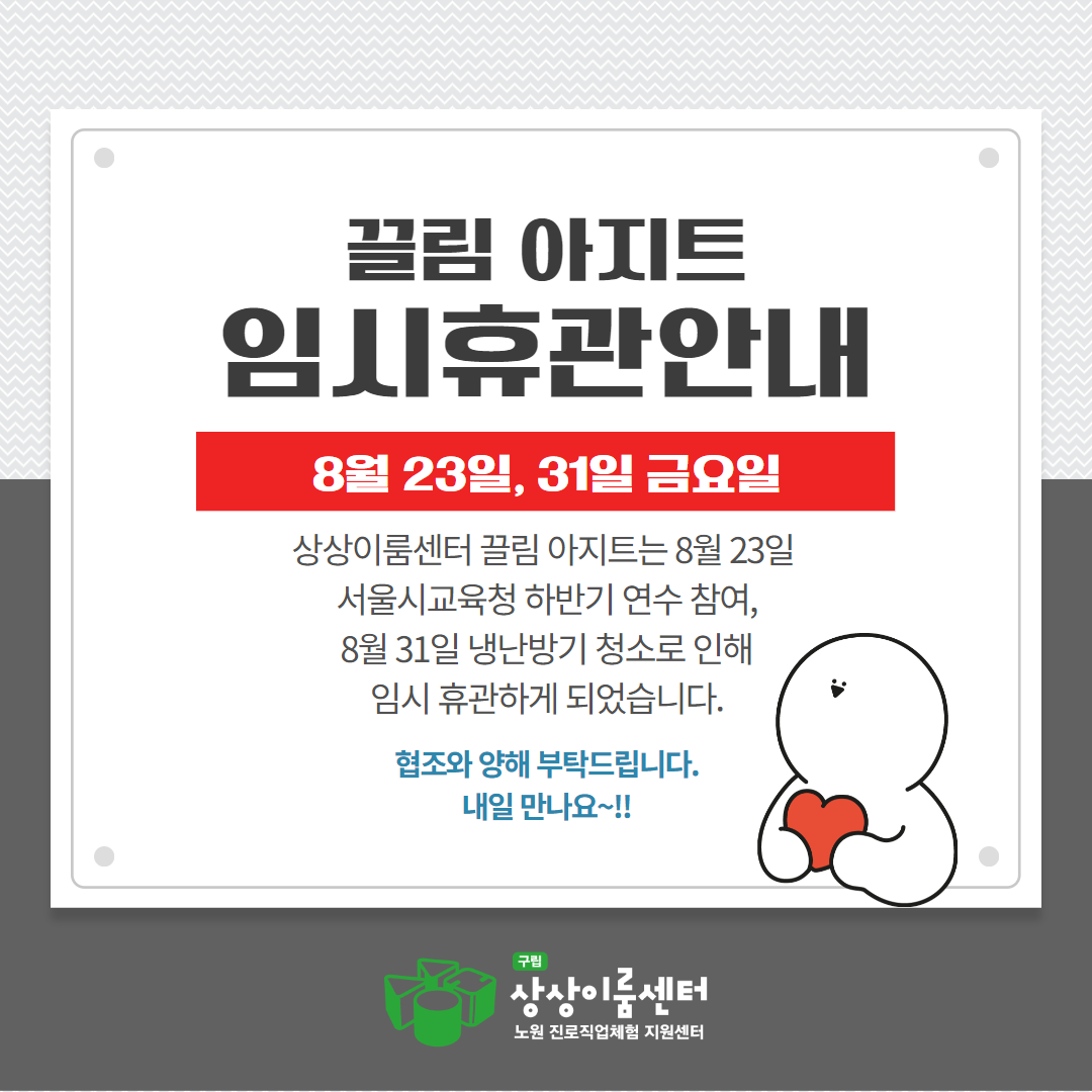 2024년 8월 23일, 31일 아지트가 휴관합니다.