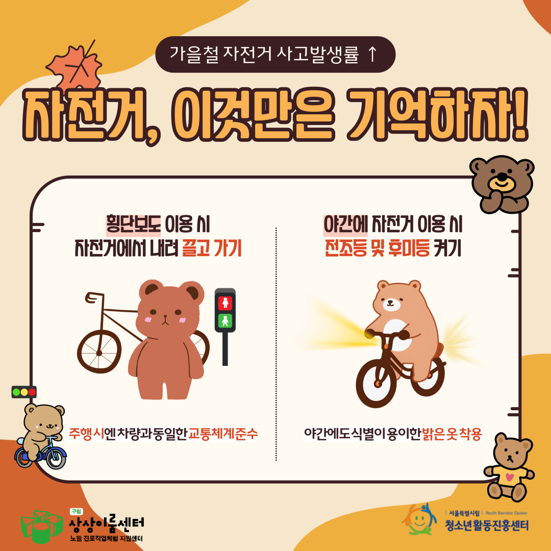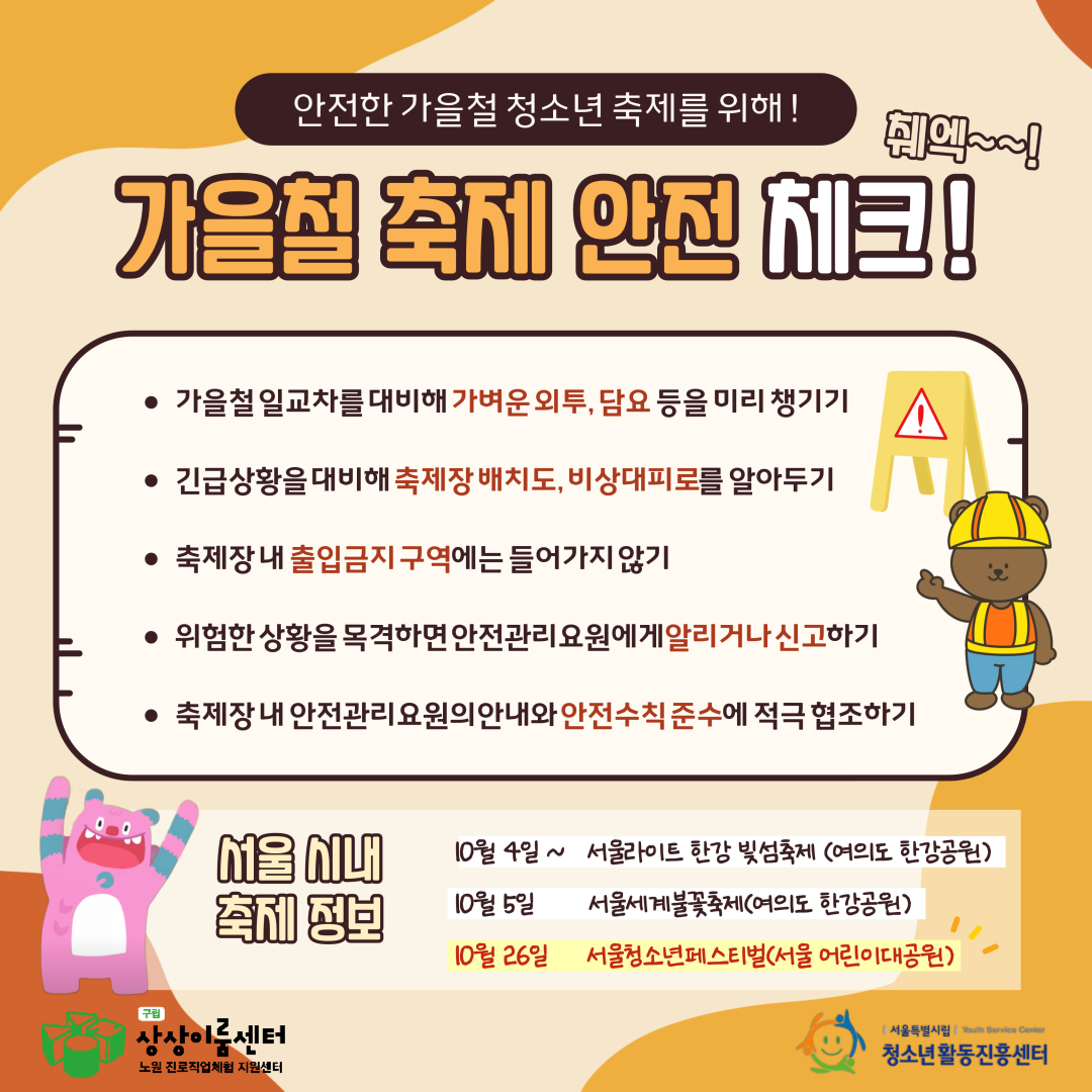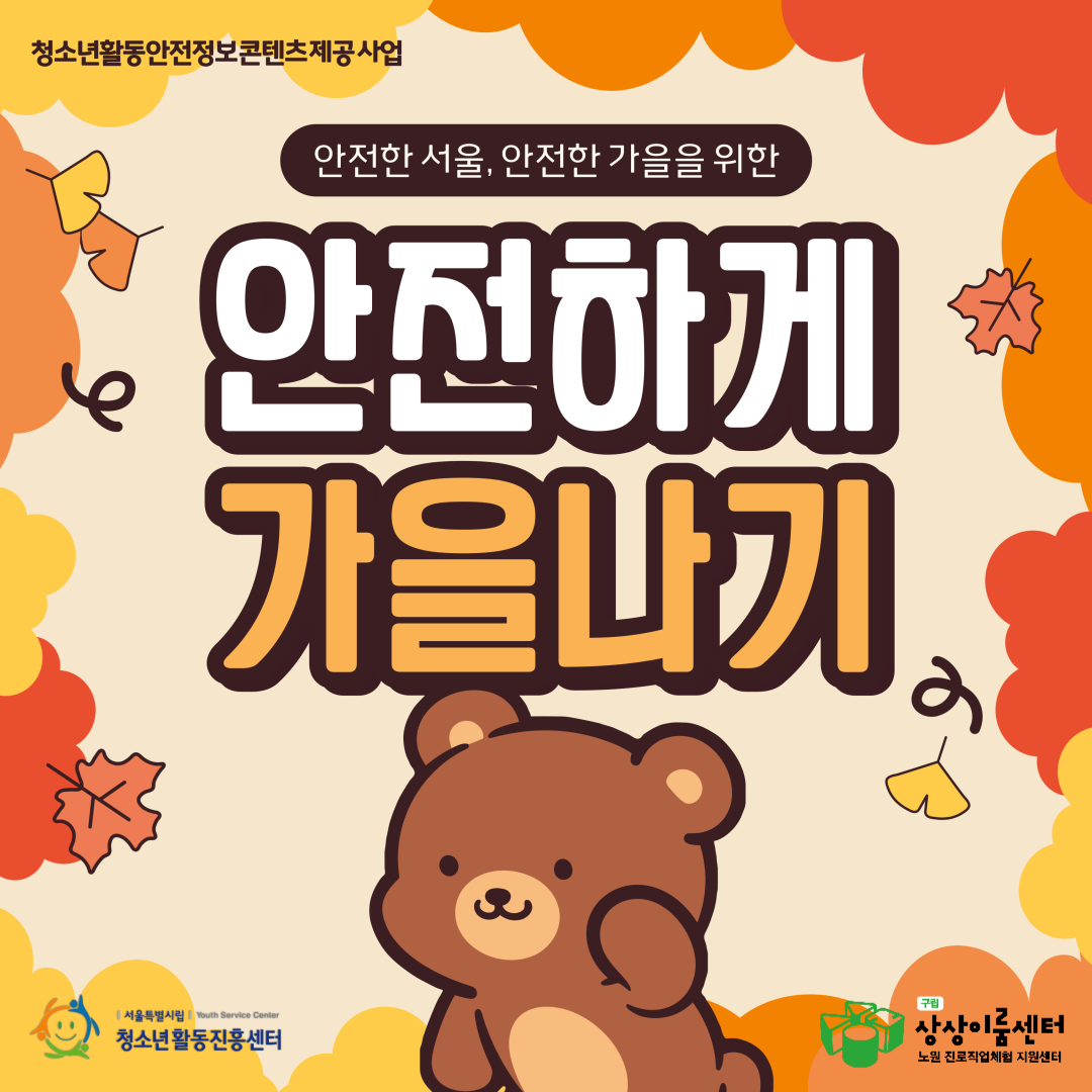 카테고리 없음 안전한 서울, 안전한 가을을 위한 안전하게 가을나기 by 상상이룸센터(노원진로직업체험지원센터) 2024. 10. 2. 공유하기 게시글 관리 상상이룸센터 - 노원진로직업체험지원센터