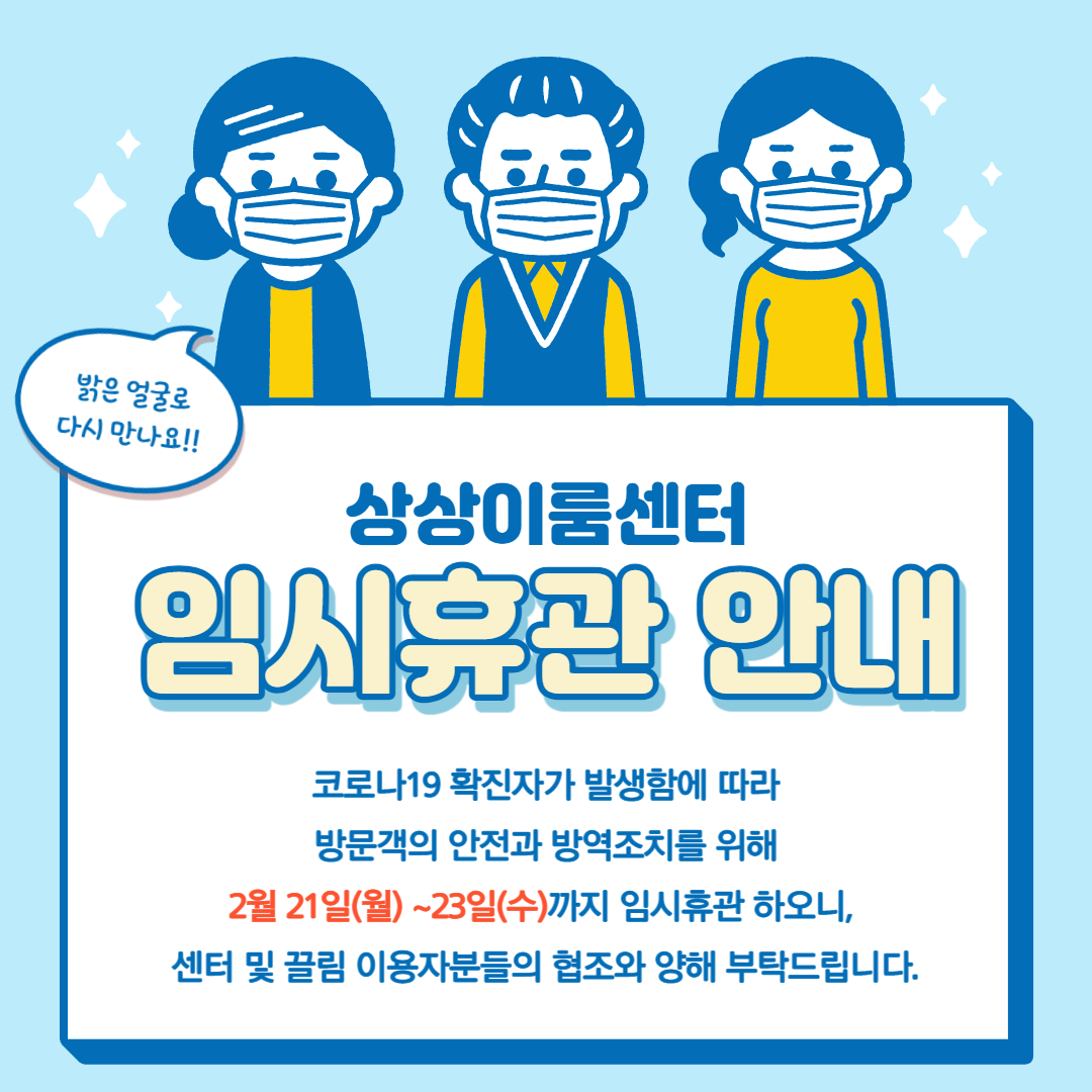 임시 휴관하오니 센터이용에 참고하여 주시기 바랍니다.
