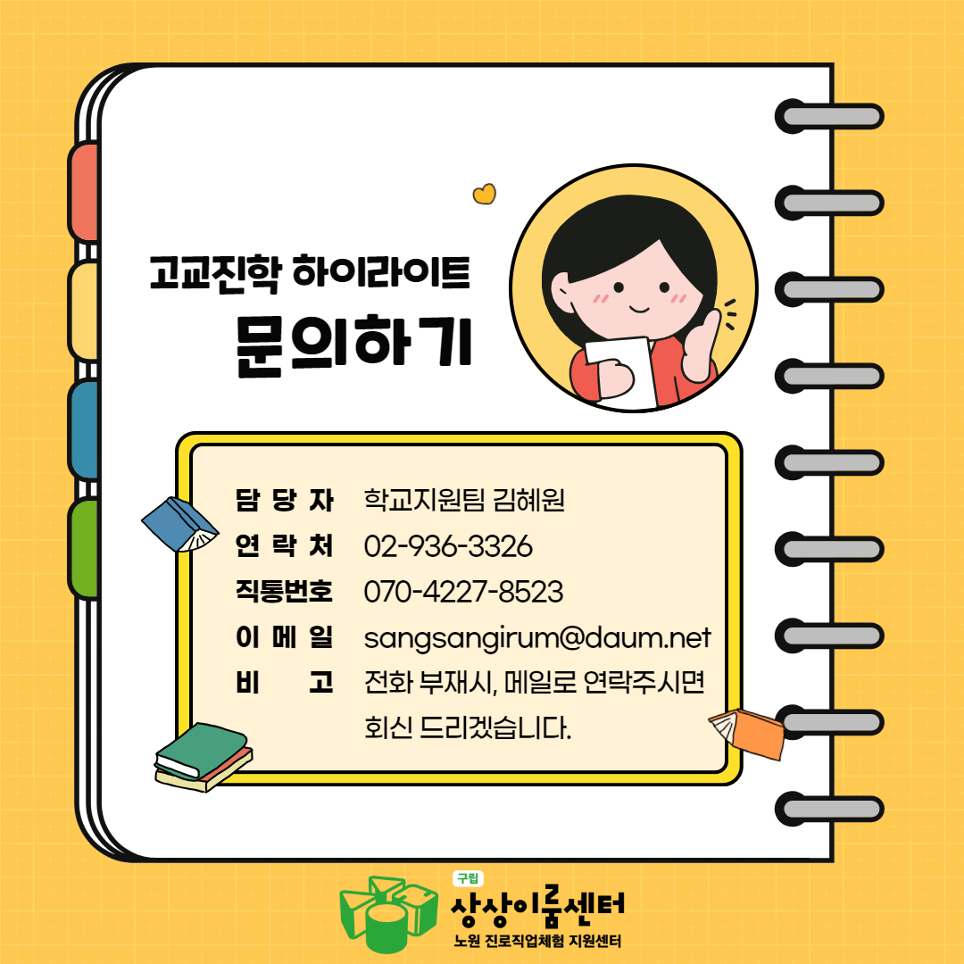 문의 : 상상이룸센터(노원진로직업체험지원센터) 학교지원팀 김혜원 070-4277-8523