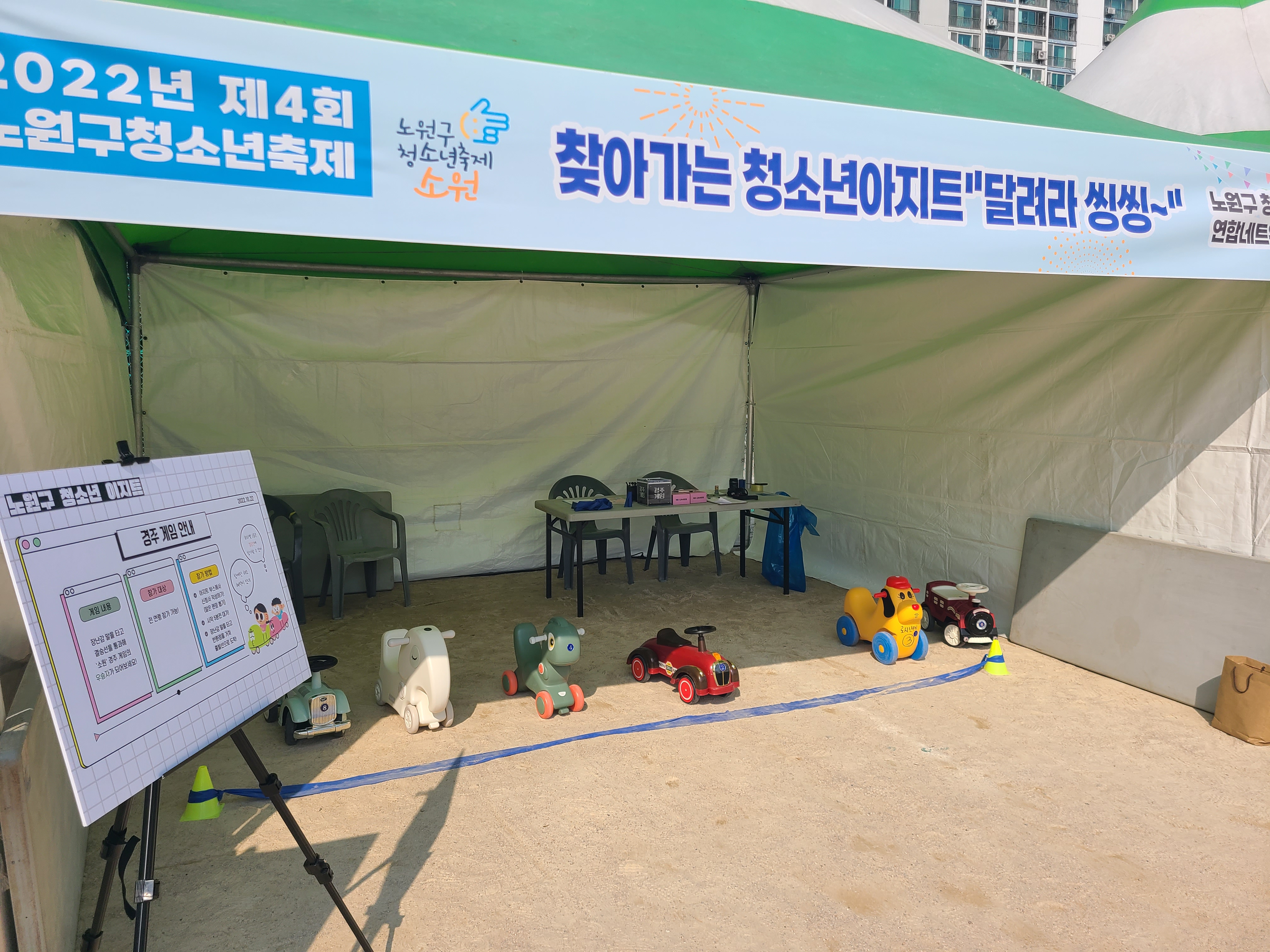 7곳 모두가 함께 '청소년 아지트 연합 부스'로 참여해서 홍보 / 게임 부스를 운영했습니다