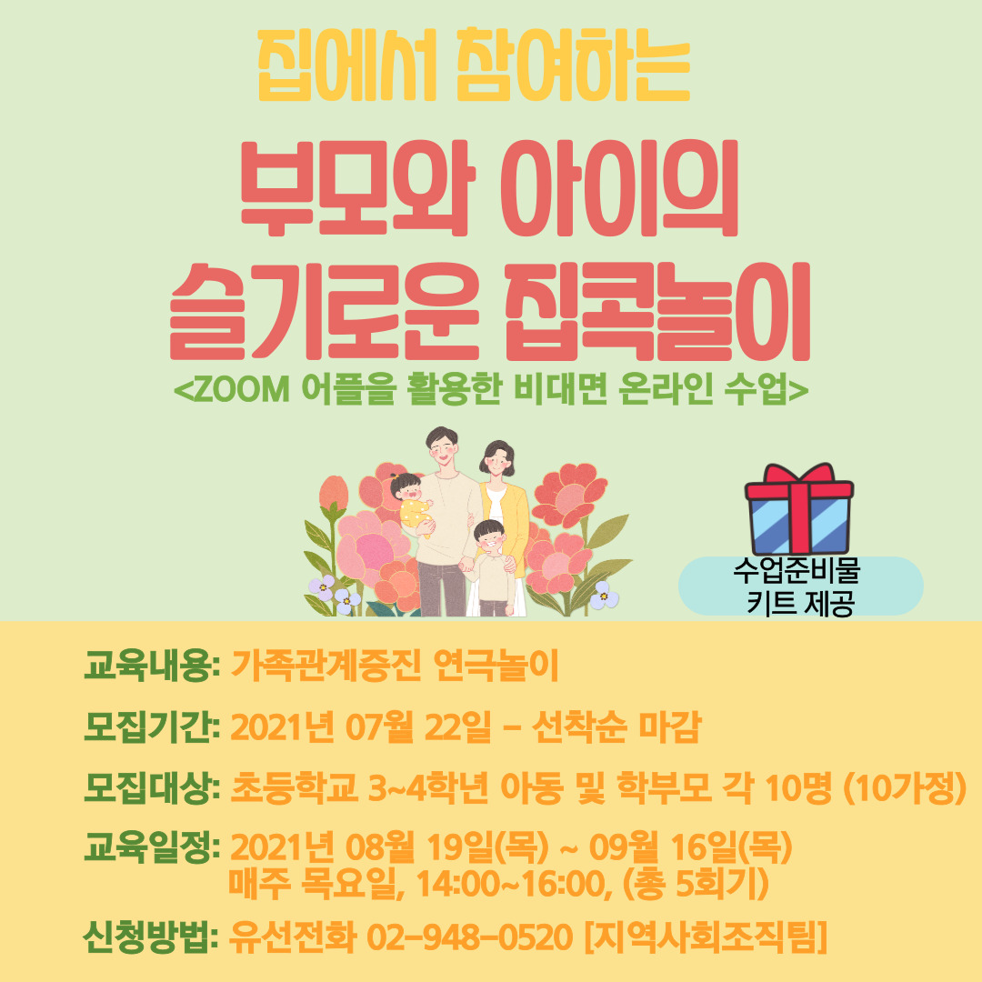 수업준비물 키트가 함께 제공된다고하니, 많은 관심과 참여바랍니다.