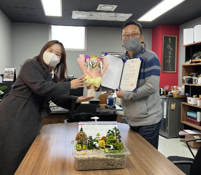 1월27일(목)에 상상이룸센터에서 노원청소년미리진로센터를 방문하여 감사장을 전달하는
