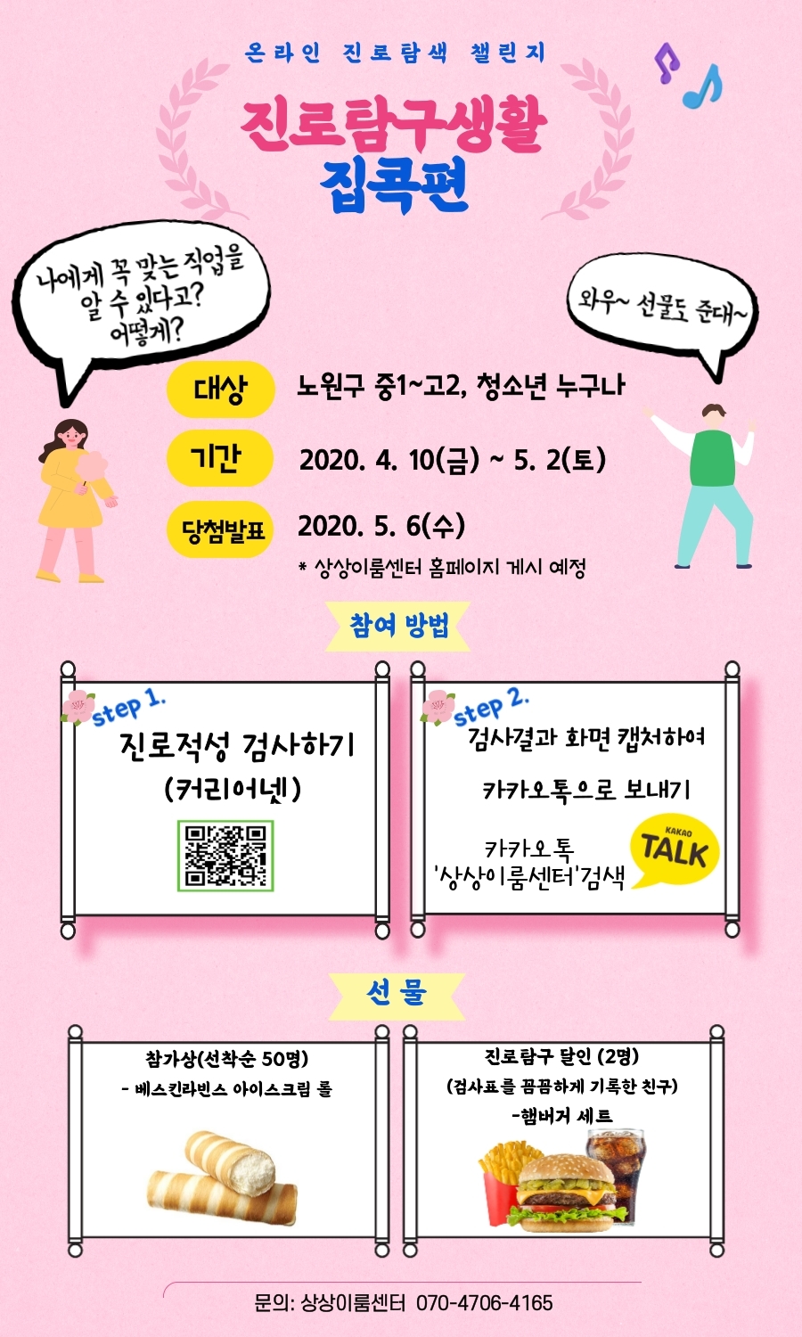 | 2020년 상상이룸센터 미션 이벤트 '아무놀이 챌린지-청소년편' 안내 (0) | 2020.04.03 |
