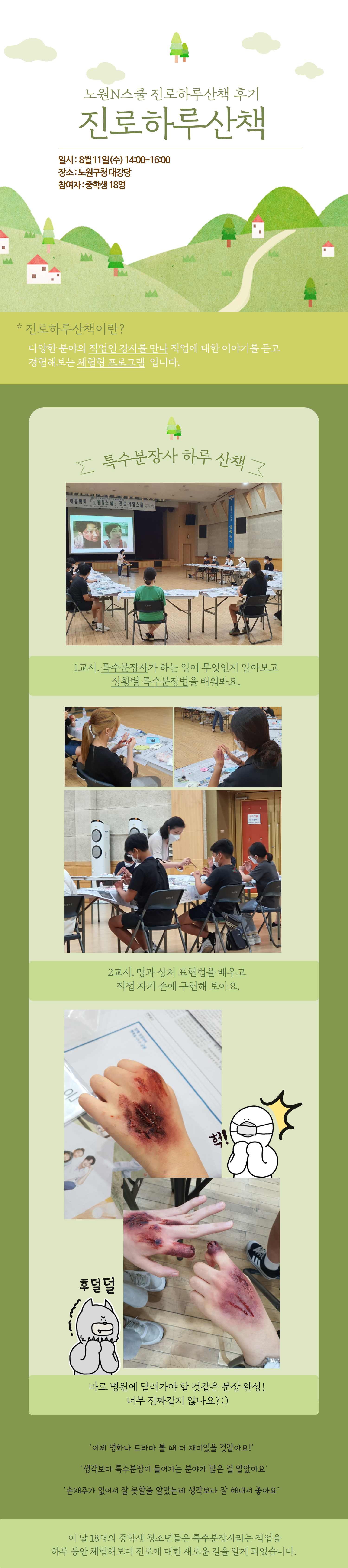 | [진로하루산책] 노원N스쿨과 함께한 ‘진로하루산책-원예치료사’ 후기 (0) | 2021.08.13 |