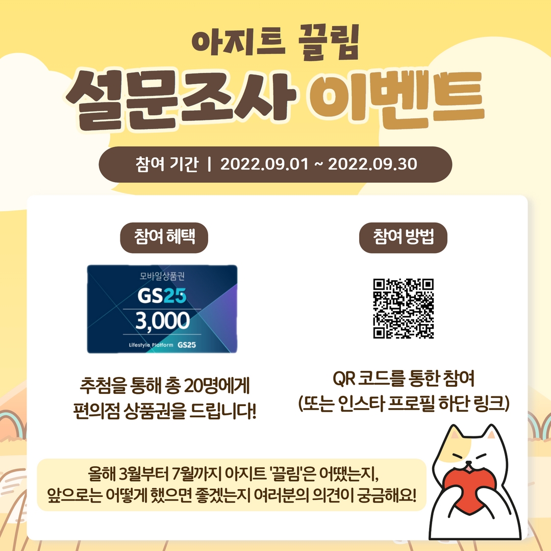 - 참여방법 : QR 코드 또는 하단 링크 클릭해서 설문 참여