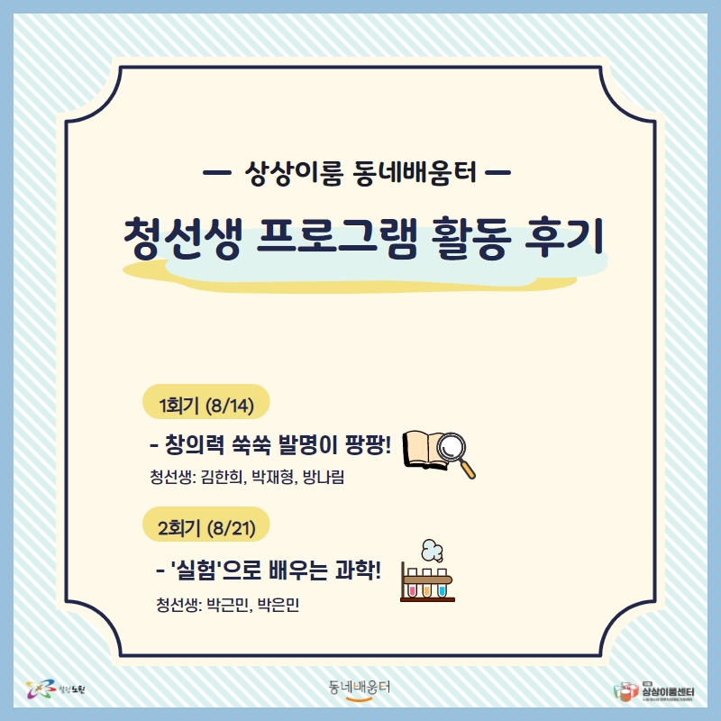 | 청선생 프로그램 활동 후기! (0) | 2021.09.23 |