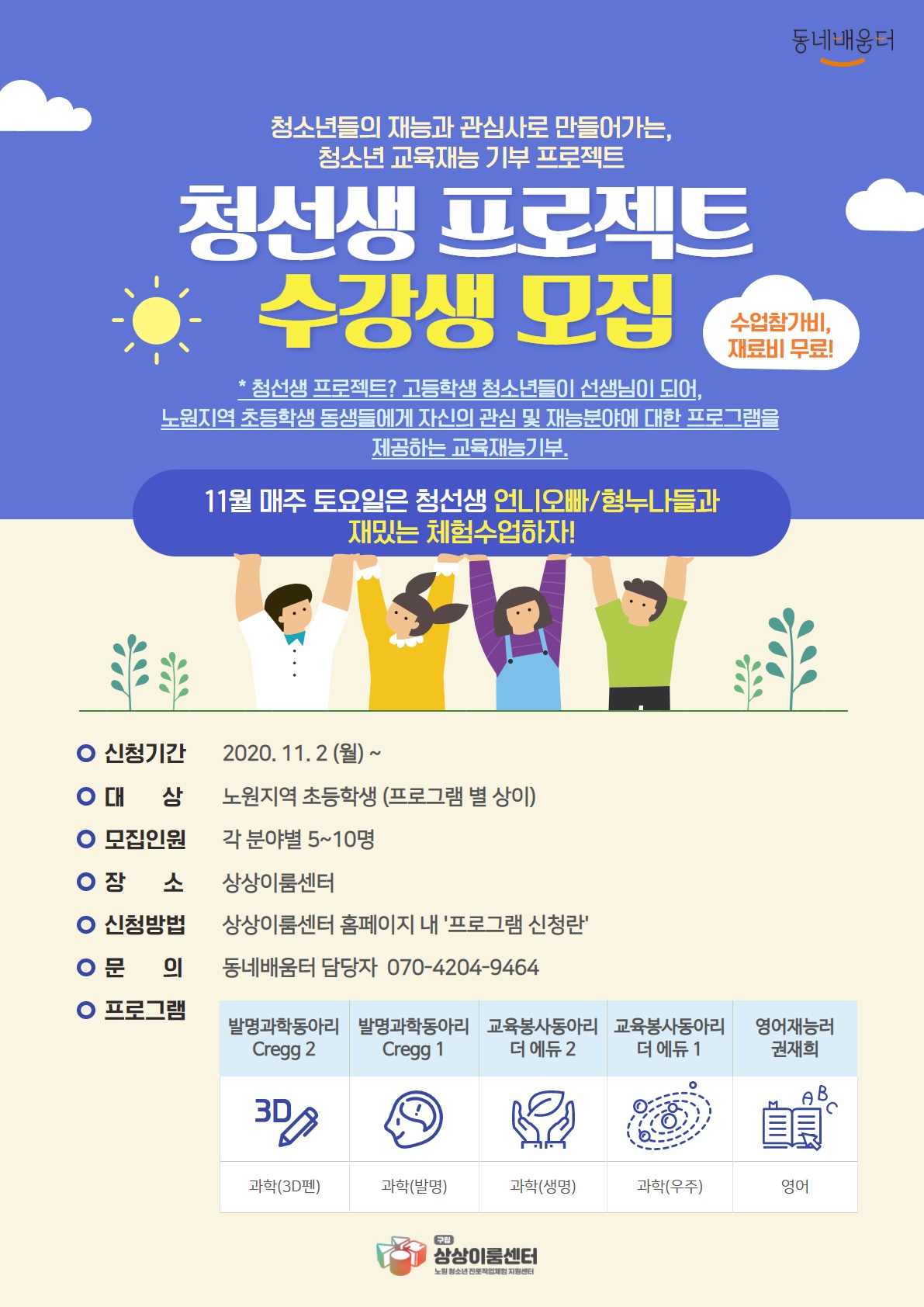 수강생으로 참여할 초등학생 친구들의 많은 관심 부탁드려요~^^