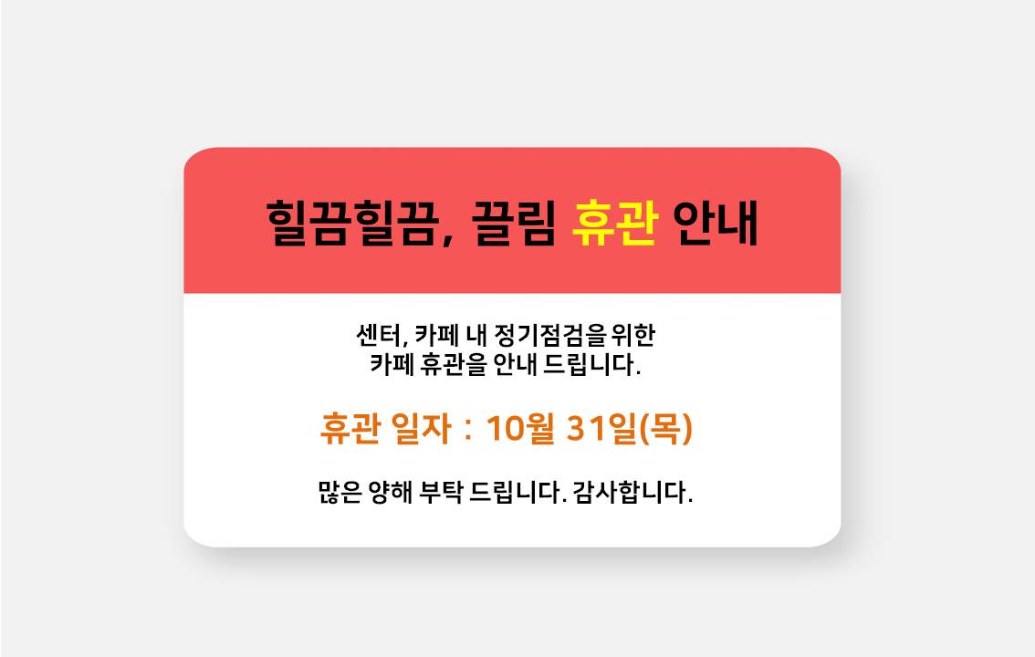 센터, 카페 내 정기 점검을 위한 카페 휴관을 안내 드립니다.