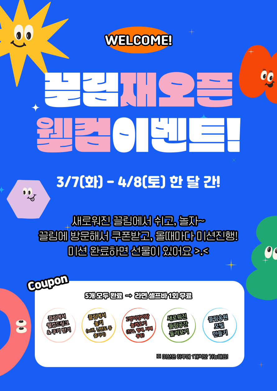 노원 청소년 친구들을 맞이하기 위해 웰컴쿠키&드링크부터,1달간 오픈 이벤트도 진행하니!!