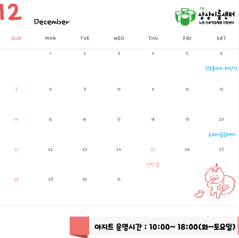어느덧 마지막 12월 끌림 아지트 일정을 소개하게 되었어요,,