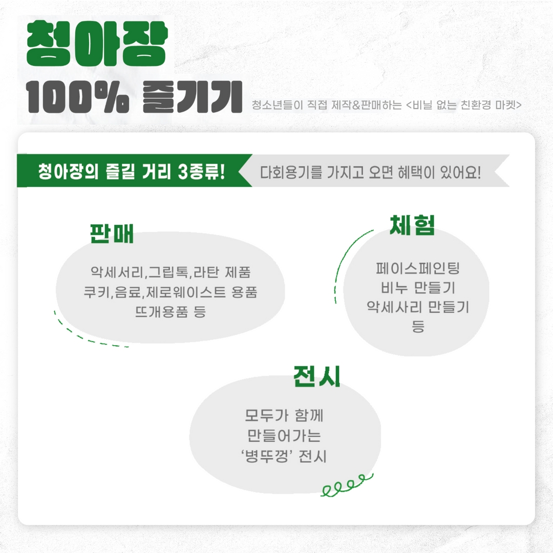 청아장이 친환경 마켓이 컨셉인 만큼 이를 잘 실천하고 드러내기 위해