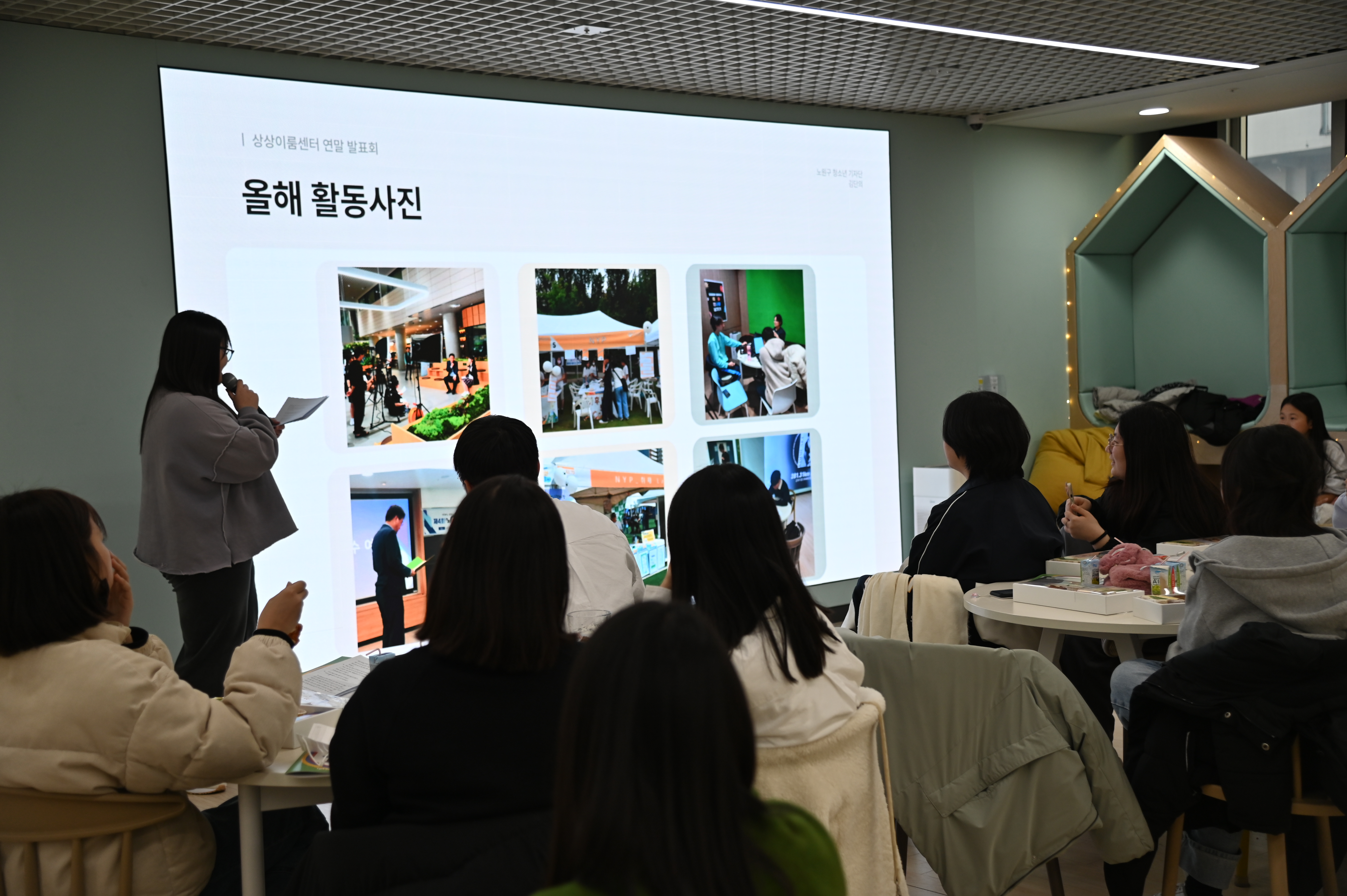 상상이룸에서는 한 해를 마무리하며 청소년들이 자신의 성장을 발표하는 '성장발표회'를 진행했습니다.
