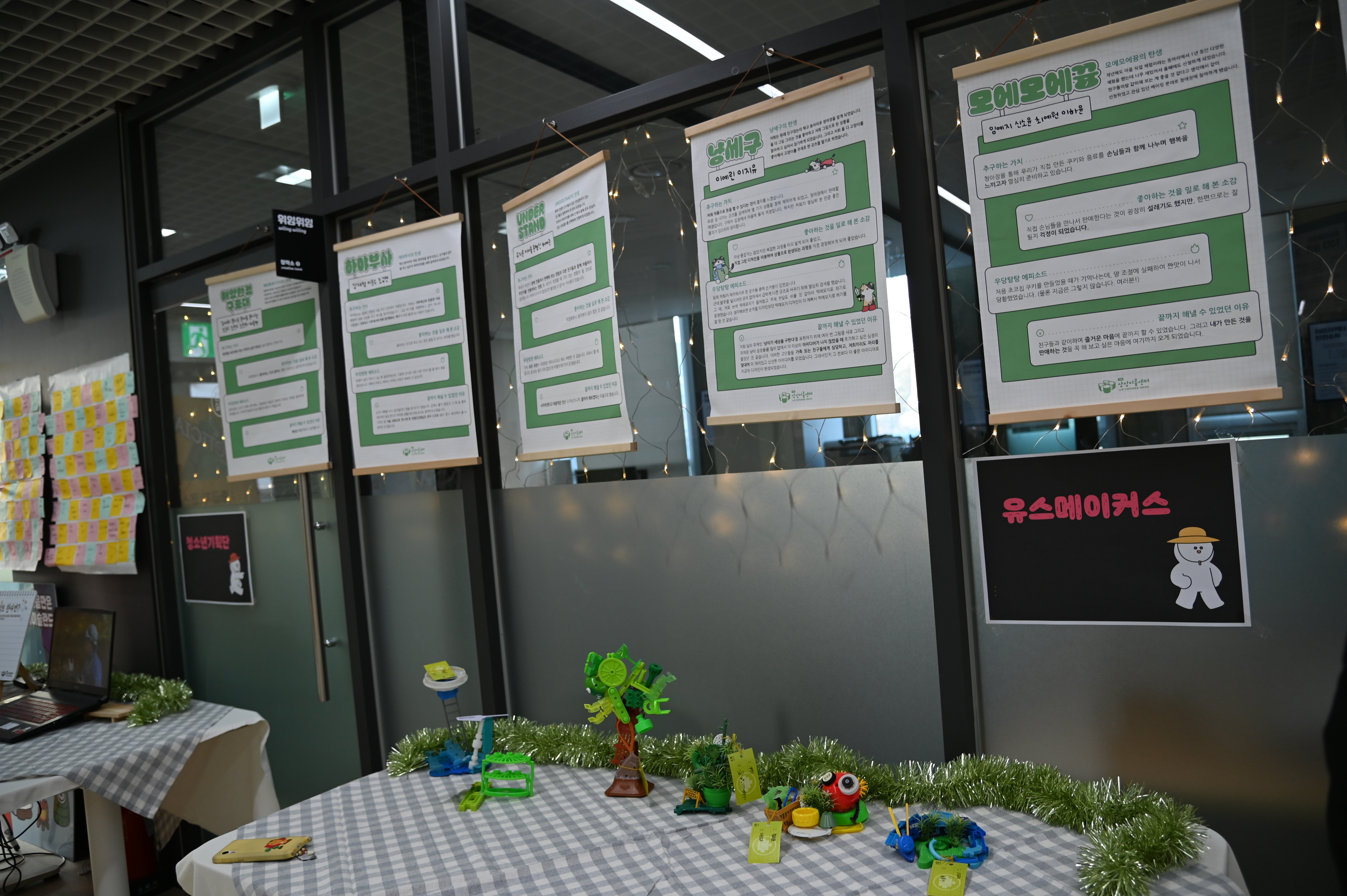 오전부터는 한 해동안 우리 청소년들이 상상이룸에서 작업한 결과물들을 전시했습니다.