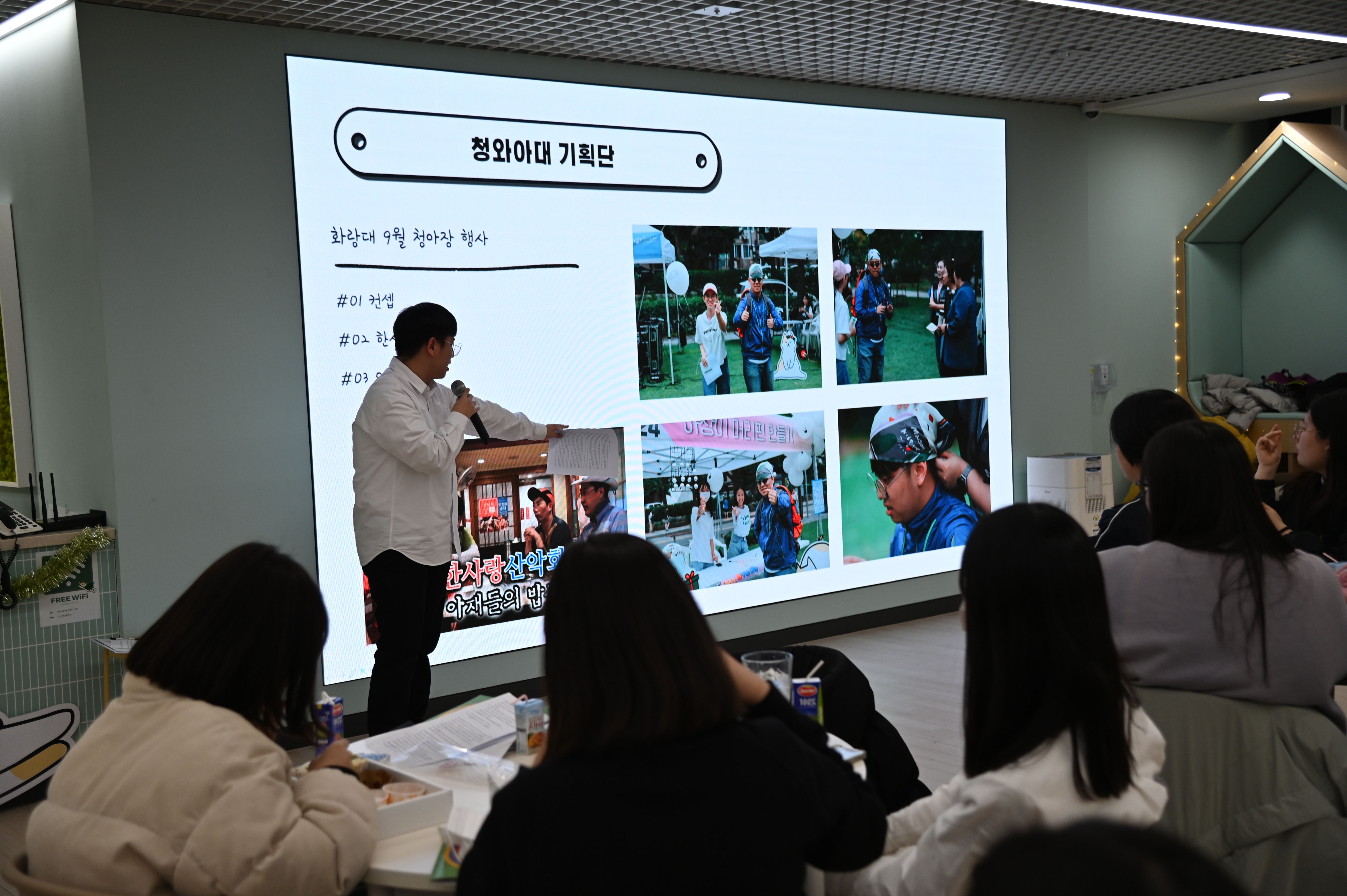 한 해동안 활동한 사진들로 만들어진 영상을 관람하고,