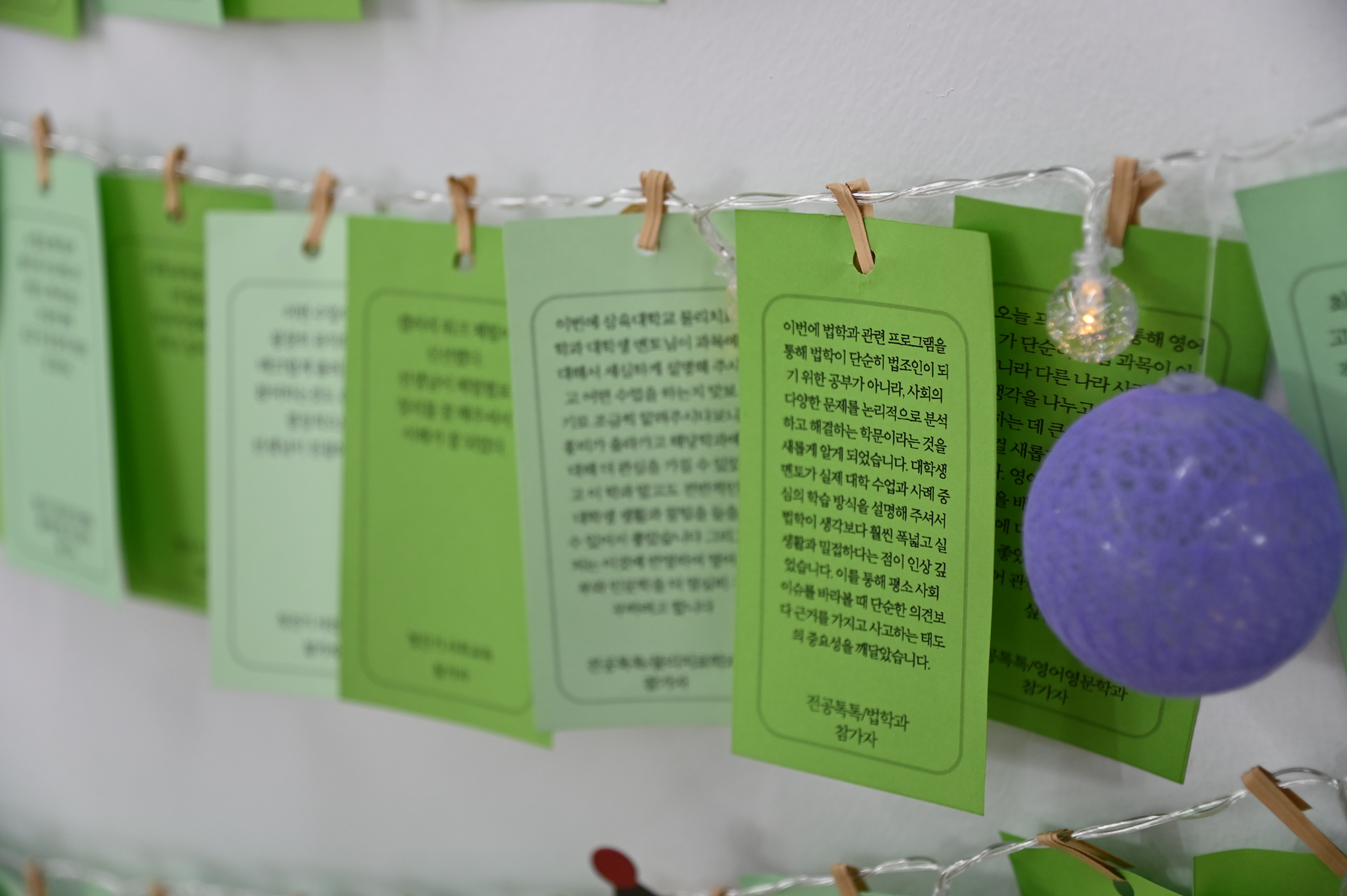 간담회 시작전 초대한 선생님들과 함께 한 해동안의 참가자들의 소감으로 만들어진 트리를 함께 감상했어요.