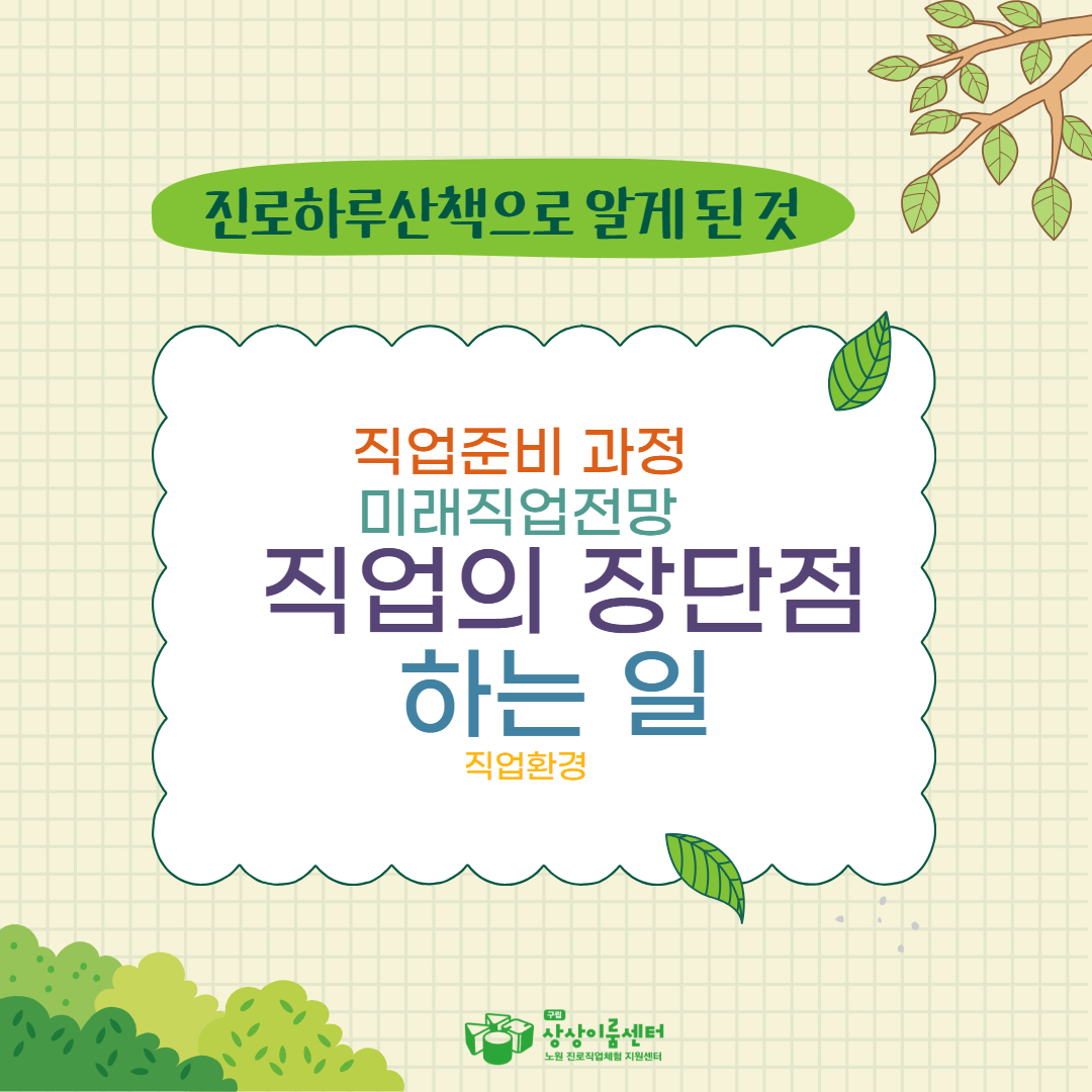진로하루산책을 통해 직무, 직업의 장단점, 직업준비과정, 미래직업전망, 직업 환경에 대해