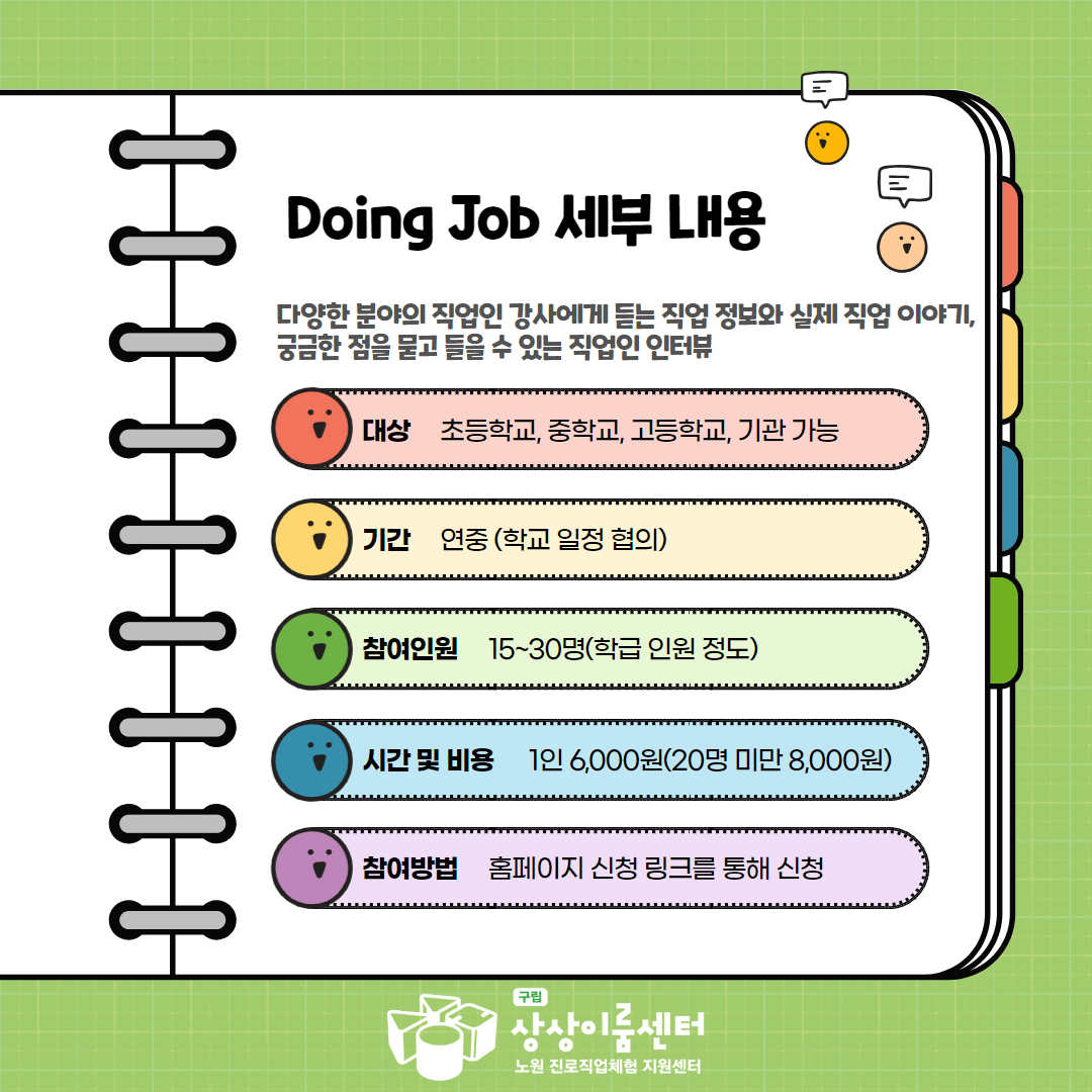 문의 : 상상이룸센터(노원진로직업체험지원센터) 학교지원팀 이재혁 070-4706-4166
