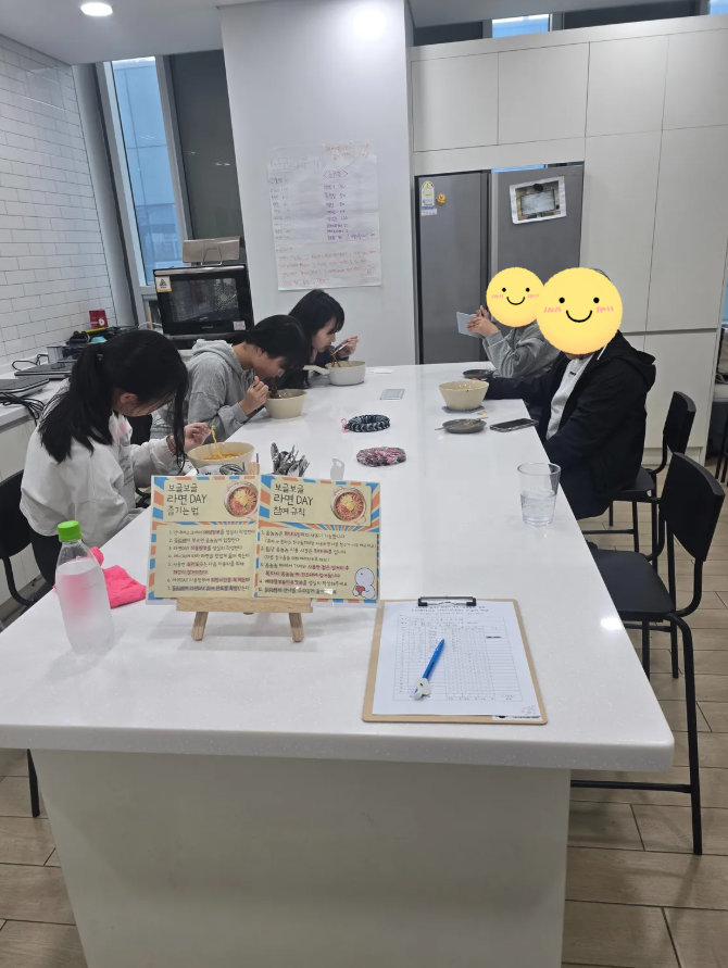 자신만의 라면 레시피를 친구에게 공유도 하는 시간을 가졌습니다~