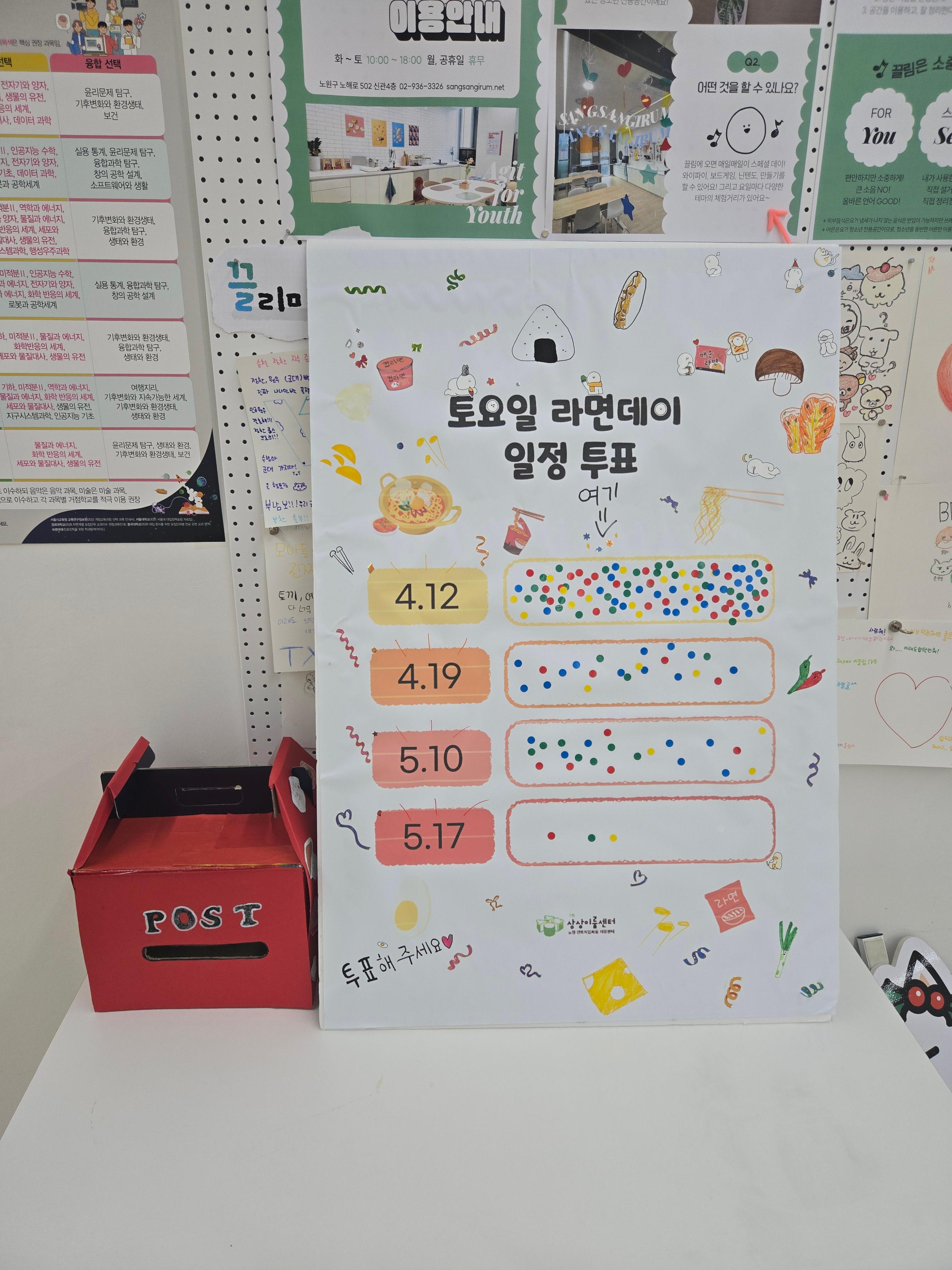 4월 12일 1시부터 4시 30분까지 라면데이를 진행했습니다